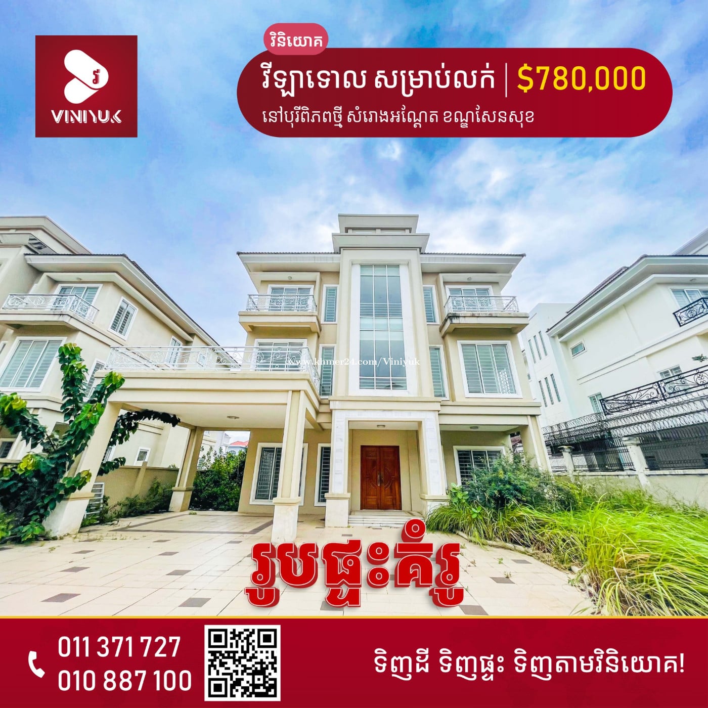 🏡វីឡាទោល សម្រាប់លក់ !! 📍ទីតាំង ៖ នៅបុរីពិភពថ្មី សំរោងអណ្តែត ខណ្ឌសែនសុខ រាជធានីភ្នំពេញ - តម្លៃ ៖ $780,000 (ចរចា) - ទំហំផ្ទះ ៖ 12m x 16m - ទំហំដី ៖ 17.5m x 26m - បន្ទប់គេង 6 , បន្ទប់ទឹក 8 - កាត់ប្លង់រឹងជូន - ផ្ទះថ្មីស្អាត - ទិសបែរត្បូង - លេខអាជ្ញាប័ណ្ណ : E-22-404