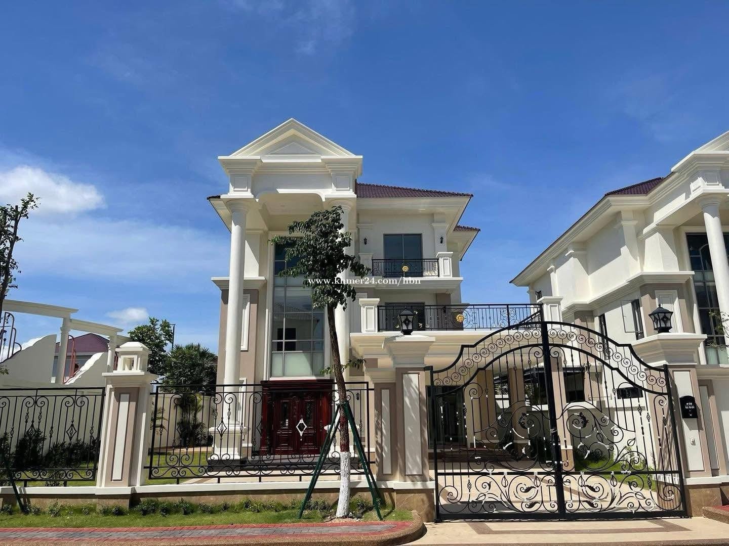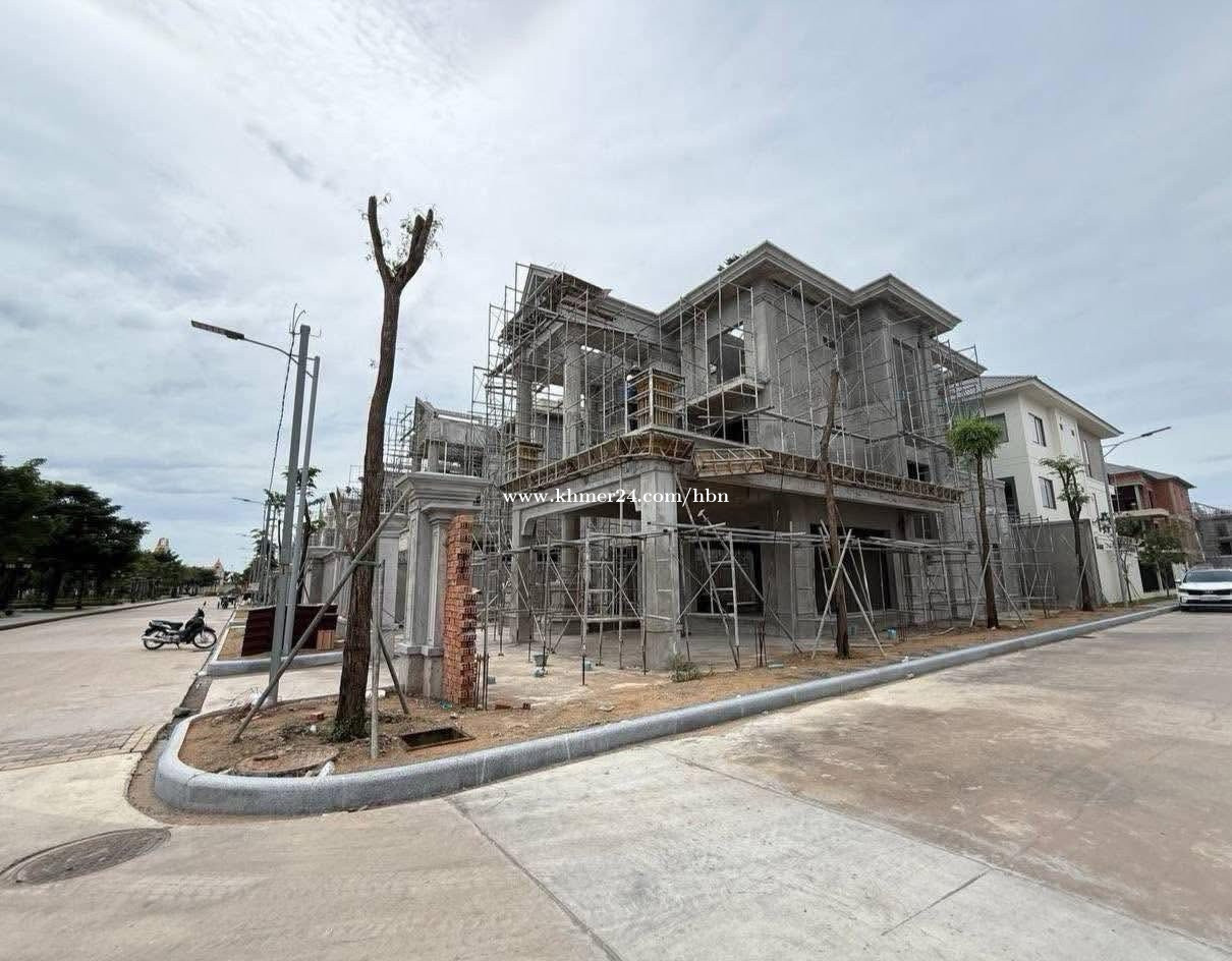 វីឡាព្រីកែងសួន ម៉ូតថ្មីសម្រាប់លក់/ Prince villa sale -តម្លៃ / price : $1,080,000(ចរចា) -ទំហំផ្ទះ /House size : 11m x 15,6m -បន្ទប់គេង/ bad room : 5 ; បន្ទប់ទឹក/ bathroom :6 - ទីតាំង | Location: គំរោង Eco Poli 1 បុរីប៉េងហួតបឹងស្នោរ