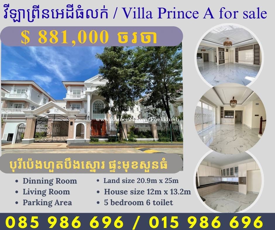 + វីឡាព្រីនA ដីធំ លក់បន្ទាន់ + ទីតាំងបុរីប៉េងហួតបឹងស្នោរ + តម្លៃលក់ $ 881,000 ចរចា + ផ្ទេរប្លង់ត្រឹមបុរី + ផ្ទះទល់មុខសួនធំ សល់ដីចំហៀងធំ + ទំហំដី: 20.9m x 25m + ទំហំផ្ទះ: 12m x 13.2m + បន្ទប់គេង: 5 + បន្ទប់ទឹក: 6 + ទំនាក់ទំនងលេខ / contact ☎️ Cellcard: 085986xxxClick To Call ☎️ Smart: 015986xxxClick To Call Telegram : https://t.me/foekkhinh90 Channel telegram : https://t.me/villaforsaleinphbs #一号路炳发城 #洪森大道 #大金欧附近 #玫瑰滨江园 #金边找房 #排屋出租 #联排出租 #双拼别墅出租 #双拼别墅出售 #炳发60米 #炳发50米 #永旺二附近 #永旺三附近 #永旺一附近 #六号路炳发城 #堆谷区