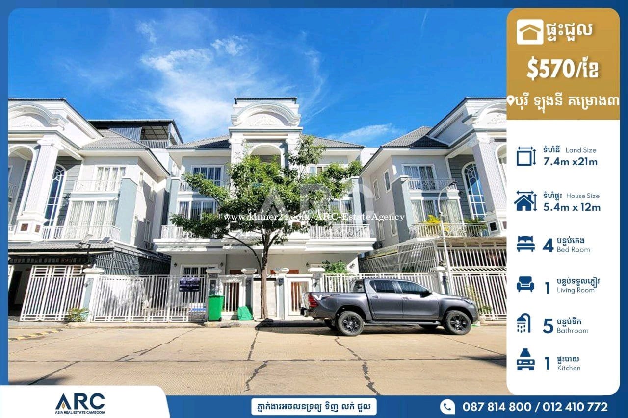 🏘️ វីឡាភ្លោះ(Twin Villa) សម្រាប់ជួលនៅបុរី ឡុងនី (គម្រោង៣) *តម្លៃ: 570$(ចចារ) *ទំហំផ្ទះ Size House: 5.4m x 12m *ទំហំដី Size Land: 7.4m x21m *បន្ទប់គេង Bedroom: 4 *បន្ទប់ទឹក Bathroom: 6 👉សម្ភារ:មាន: វាំងននគ្រប់បន្ទប់ 👉ផ្ទះថ្មីស្អាត ជិតផ្សារ សាលារៀន មានសន្តិសុខ២៤ម៉ោង មានផាសុខភាព សុវត្ថិភាព..... 📍 នៅសង្កាត់ដង្កោ ខណ្ឌដង្កោ រាជធានីភ្នំពេញ Tel: 087814xxxClick To Call / 012410xxxClick To Call / 070410xxxClick To Call Telegram http://t.me/@Vebol087 Channel Telegram https://t.me/ARCDangkorVebol Channel telegram: https://t.me/AsiaRealEstateCambodia #ផ្ទះលក់បន្ទាន់ខ្លាំង #villaforsale #KhanDangkao #khanmeanchey 👉អាជ្ញាប័ណ្ណ: EV-08-069