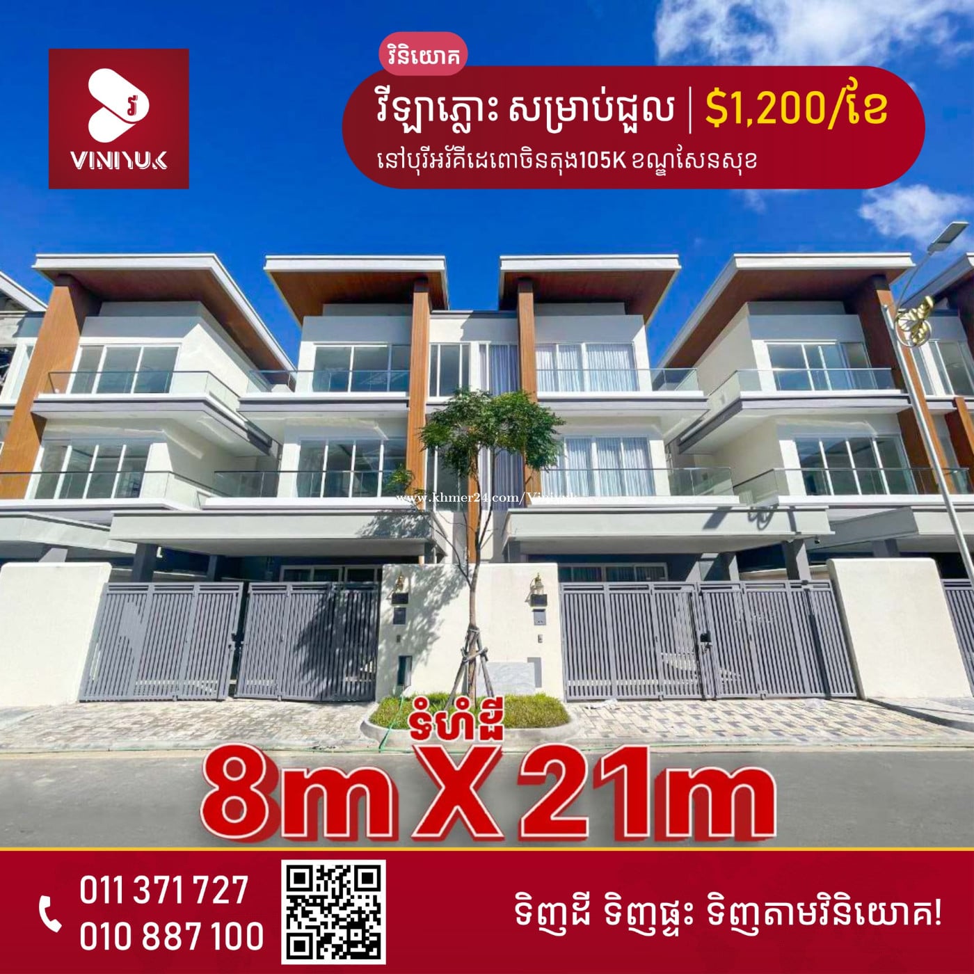 🏡វីឡាភ្លោះ សម្រាប់ជួល!! 📍ទីតាំង ៖ នៅរីអ័រគីដេដឹពោធិ៍ចិនតុង 105K ខណ្ឌសែនសុខ - តម្លៃជួល: $1,200/ខែ ចរចា - ទំហំដី : 8m x 21m - ទំហំផ្ទះ : 6m x 12m - បន្ទប់គេង 4, បន្ទប់ទឹក 5 - ទិសជើង - លេខអាជ្ញាប័ណ្ណ : E-22-404