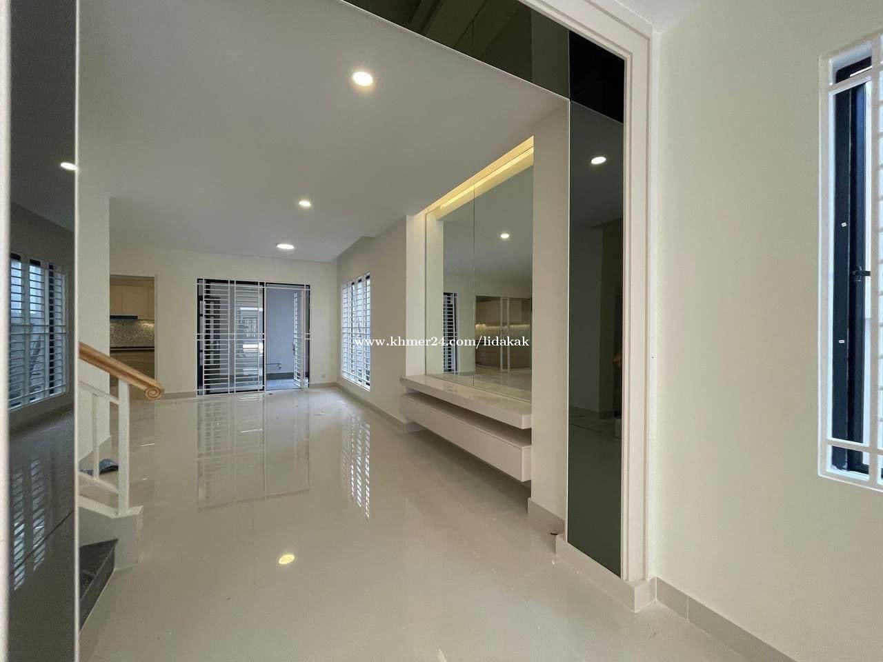 វីឡាភ្លោះ A សម្រាប់ជួល l Twin B Villa for rent borey penghuot Bsnor, Eco -តម្លៃ l rent Price : $ 1,500 -ទំហំផ្ទះ | House Size : 6m x 12m -ទំហំដី | Land size : 8m x 28m -បន្ទប់គេង | Bedroom: 4 -បន្ទប់ទឹក | Bathroom: 5 -កំពស់ | 3ជាន់ | E0,E1,E2 -ទីតាំង | Location៖ ភូមិស្វាយតាអុក, សង្កាត់វាលស្បូវ, ខណ្ឌច្បារអំពៅ, រាជធានីភ្នំពេញ។