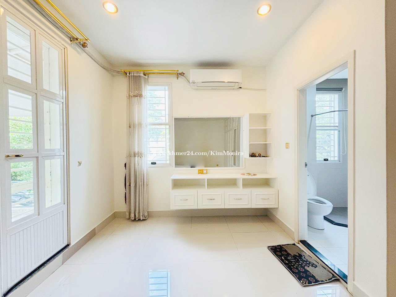 🏡វីឡាភ្លោះ B សម្រាប់ជួល | Villa Twin B for Rent 💲តម្លៃជួល | Rent Price : $1,500 - សម្ភារៈ | Furniture : Some (ម៉ាស៊ីនត្រជាក់ចំនួន៥, វាំងននពេញ, គ្រែពូកចំនួន២ឈុត ទូខោអាវចំនួន៥) - ទំហំផ្ទះ | House Size: 6m x 15m - ទំហំដី | Land Size : 8.2mx 25m - បន្ទប់គេង | Bedroom : 5 - បន្ទប់ទឹក | Bathroom : 6 - បន្ទប់ទទួលភ្ញៀវ | Living Room : 1 - ផ្ទះបាយ | Kitchen : 1 - ចំណតឡាន | Parking Lot : 1-2 📍ទីតាំងស្ថិតនៅក្នុង បុរីប៉េងហួតបឹងស្នោរ គម្រោងរ៉ូសាតូ សង្កាត់និរោធ ខណ្ឌច្បារអំពៅ រាជធានីភ្នំពេញ | Location in Borey Peng Houth Beong Snor Phnom Penh. 📞 Smart : 098890xxxClick To Call 📞 Cellcard : 095444xxxClick To Call 📱 Telegram : 098890xxxClick To Call