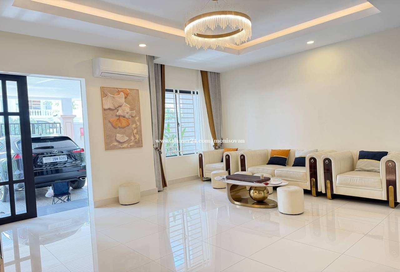 វីឡាភ្លោះB សម្រាប់លក់ ក្នុងបុរីប៉េងហួត| Twin B Villa for Sale 📍 ទីតាំង៖ បុរីប៉េងហួតបឹងស្នោរ / Borey Penghuoth Boeungsnor - តម្លៃលក់ | $355,000 (ចរចា) - កាត់ប្លង់រឹង | Hard title - ទំហំដី | Land Size: 7,8m x 25m - ទំហំផ្ទះ | House Size: 6m x 15m - មានសម្ភារៈពេញ | Full Furniture - បន្ទប់គេង | Bedroom: 5 - បន្ទប់ទឹក | Bathroom: 6 - ផ្ទះបាយ | Kitchen: 1 - កន្លែងទទួលភ្ញៀវ | Living room: 1 - ចំណតឡាន | Parking: 2 - បន្ទប់ office: 1 📲ទំនាក់ទំនង/Telegram: Hotline: 070843xxxClick To Call / 092863xxxClick To Call Direct Chat: https://t.me/samnang_TSN #VillaForSale #BoreyPenghuoth #AEON1 #ChbarAmpov #PhnomPenh