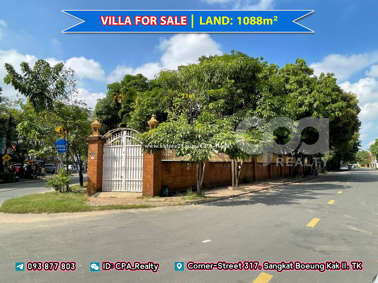 ⭕️វីឡាលក់នៅទួលគោក 🆔00653 💢ទំហំដីសរុប: 1,088m2 💢តម្លៃលក់: $2,200/m2 ចរចារ 📍ទីតាំង៖ កែងផ្លូវលេខ៣១៧, សង្កាត់បឹងកក់២, ខណ្ឌទួលគោក ☎️ 𝟎𝟗𝟑 𝟖𝟕𝟕 𝟖𝟎𝟑 𝙩𝙚𝙡𝙚𝙜𝙧𝙖𝙢: https://t.me/cparealtors 𝙬𝙚𝙘𝙝𝙖𝙩 𝙄𝘿: 𝘾𝙋𝘼_𝙍𝙚𝙖𝙡𝙩𝙮 𝙩𝙚𝙡𝙚𝙜𝙧𝙖𝙢 𝙘𝙝𝙖𝙣𝙣𝙚𝙡: https://t.me/cparealty