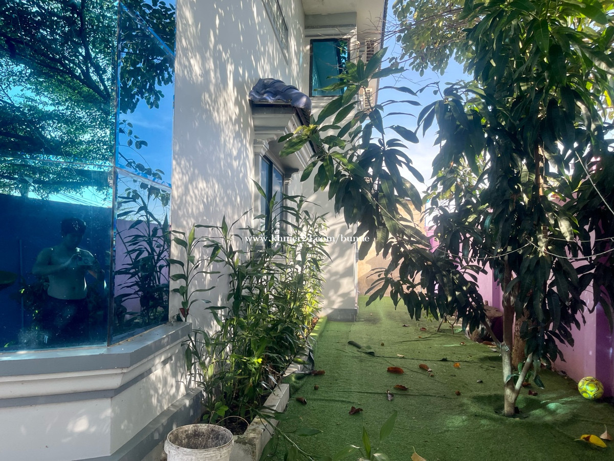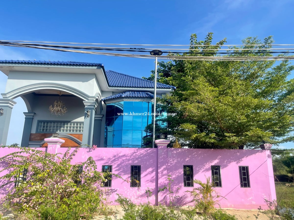 ផ្ទះវីឡា លំហែអារម្មណ៍ ខ្យល់បរិសុទ្ធ ក្បែស្ទឹងសិរីសោភ័ណ ទំហំដី 945m2 ទទឹង 27m បណ្តោយ 35m ផ្ទះបែរមុខទៅទិសខាង ត្បូង ភ្លេីង 32A បន្ទប់គេង5 បន្ទប់ទឹក6 ម៉ាសុីនត្រជាក់ 4