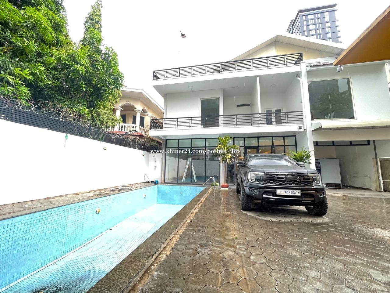 វីឡាអាងទឹកសម្រាប់ជួល នៅបឹងកេងកង១ - តម្លៃជួល : $7,500ក្នុងមួយខែ - ទំហំដី : 17m x 33m - បន្ទប់ : 10 - បន្ទប់ទឹក : 12 - អាងទឹក : 01 - សម្ភារៈមានមួយចំនួន ទីតាំងល្អ សម្រាប់រស់នៅ បើកការិយាល័យធ្វើការ ក្រុមហ៊ុន នឹងផ្សេងៗទៀត..... 万景岗1号泳池别墅出租 - 租金:每月7,500美元 - 土地面积:17米 x 33米 - 房间数:10 - 浴室数:12 - 泳池数:1 - 部分配套设施齐全 地理位置优越,适合居住、办公、公司等用途......