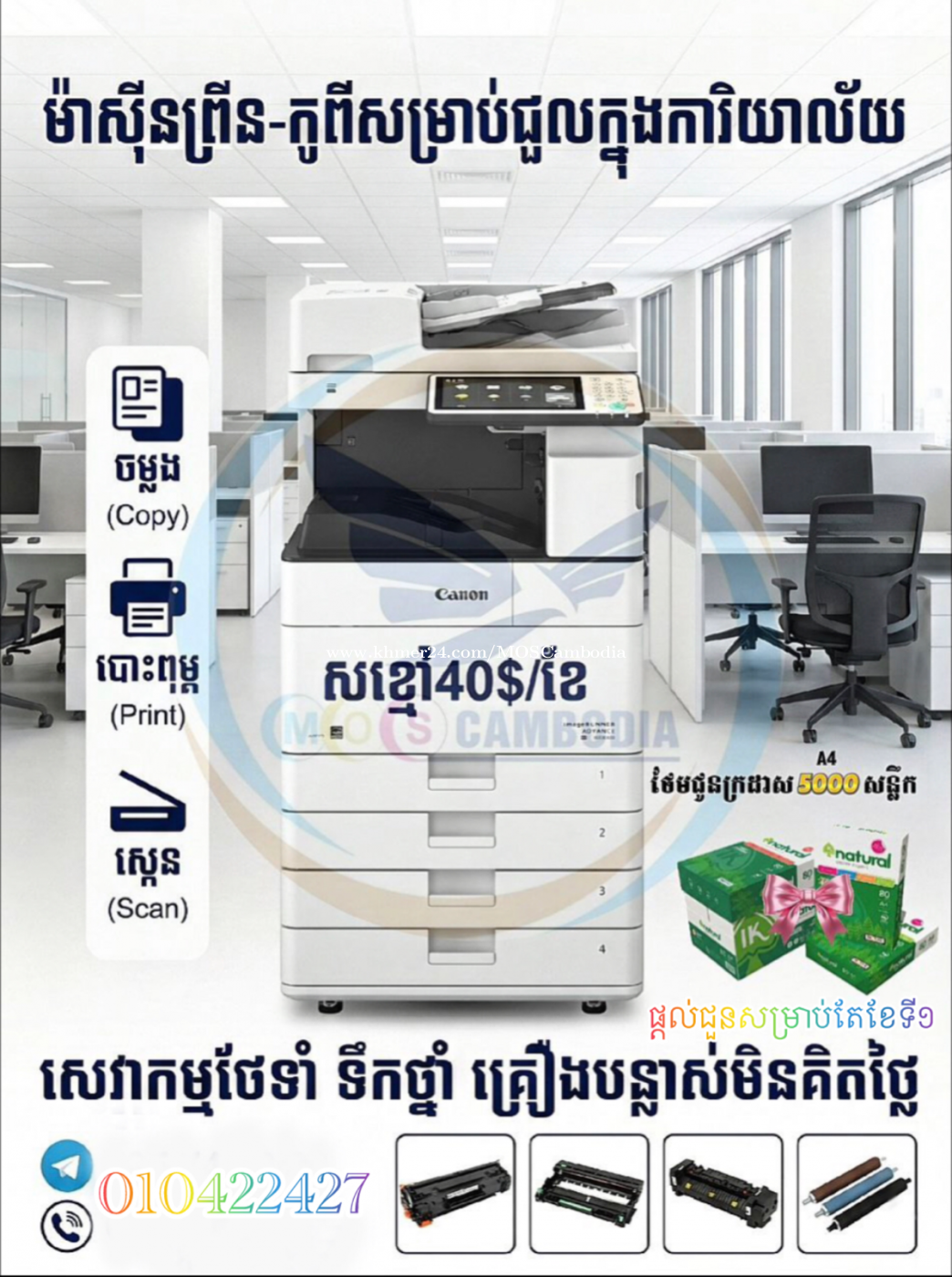តម្លៃទាប់បំផុត ប្រើពេញ១ខែ គ្រឿងបន្លាស់ហ្វ្រី😮😮 🗳🗳🗳12/ខែហ្វ្រី១ណាលឿនៗ #លក់,ជួល,ជួសជុល📠🩵 ==>ហ្វ្រីជូនខែទី១សម្រាប់តែបងៗជួលតែប៉ុណ្នះ 👉🏿បានម៉ាស៊ីនខ្នាតធំ១ 👉🏿ហ្វ្រីរ TI ភ្ជាប់ព្រី ស្កែន (មិនកំណត់កុំព្យូទ័រ) 👉🏿ហ្វ្រីរ ទឹកថ្នាំ គ្រឿងបន្លាស់ ផ្សេងៗ 👉🏿ដឹកជញ្ជូន ហ្វ្រីរ ទាំងទៅនិងមក 👉🏿ប្រើហ្វ្រីរខែទី១🫶🏻 🕹បុរីលូប្រាំ (បទពីស្តុបលូប្រាំមក) ☎️010,012,066422xxxClick To Call Telegram https://t.me/Rental_machine_Photocopy បងប្អូនអាចសួរបានពីរបៀបប្រើនិងបញ្ហាបច្ចេកទេសផ្សេងៗបាន រីករាយនិងផ្តល់យោបល់ជូន✍🏻📠