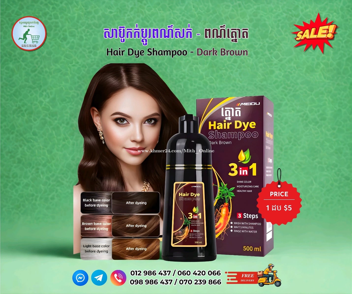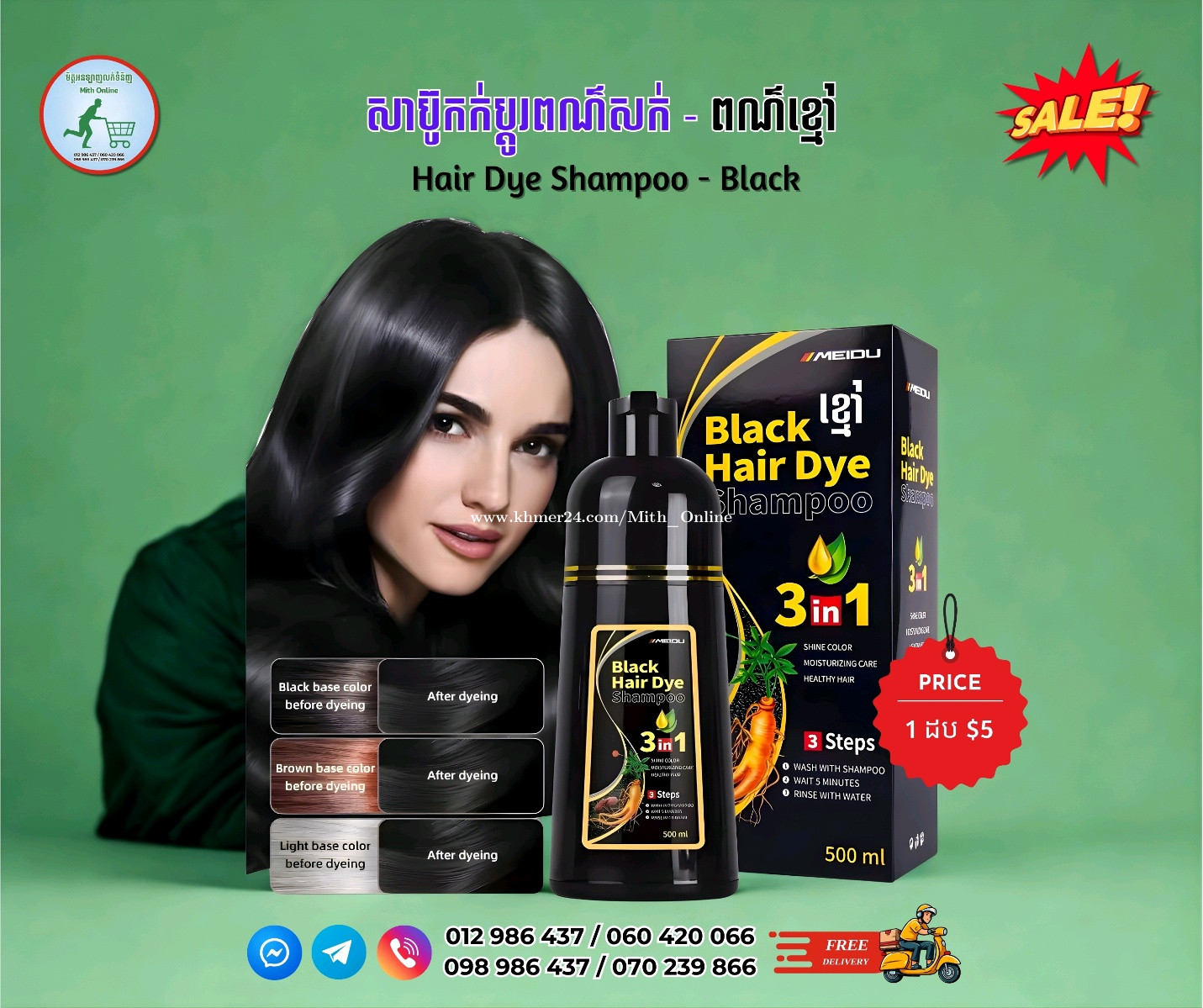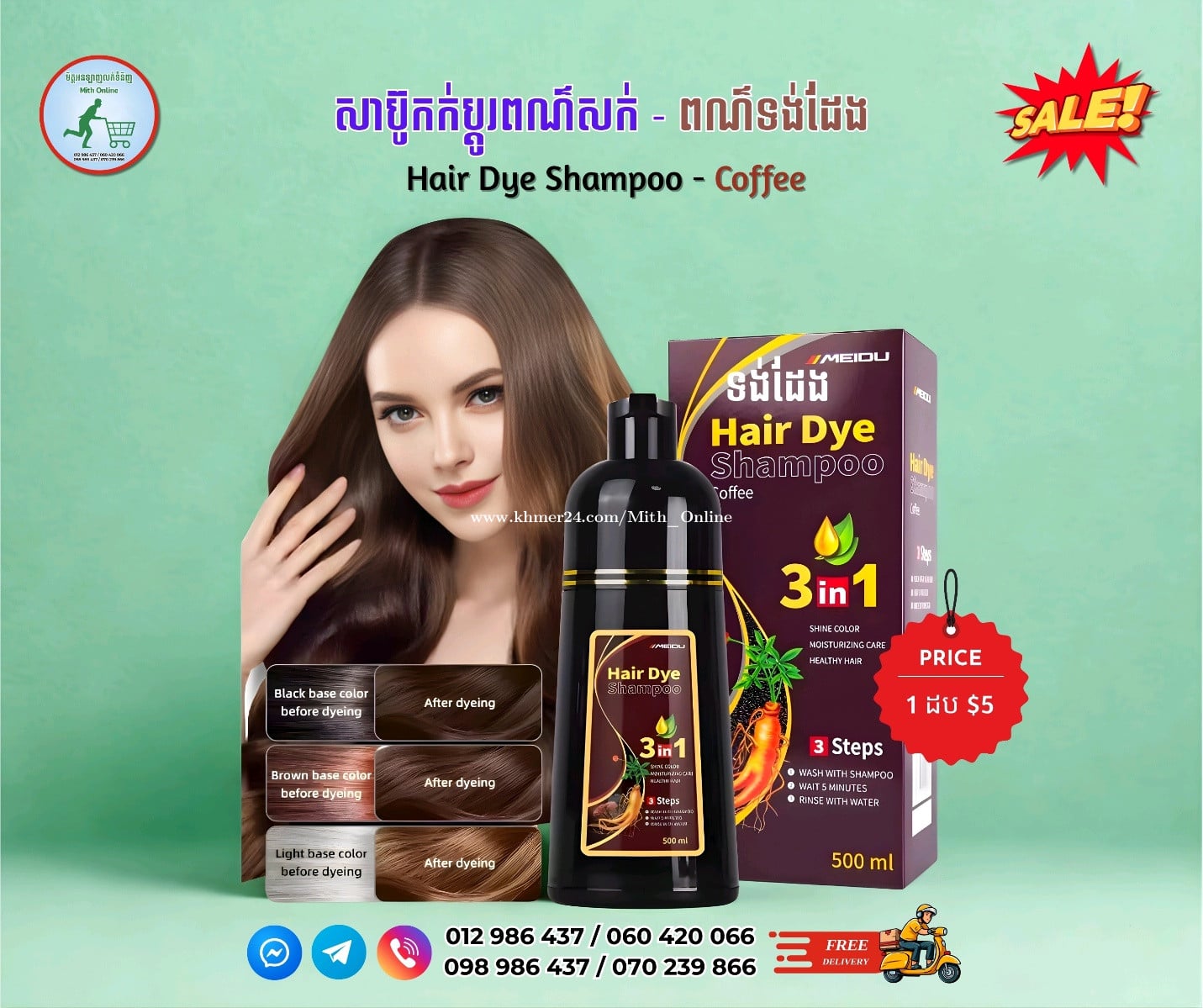 📢 សាប៊ូកក់ប្ដូរពណ៌សក់ មានបីពណ៌ ខ្មៅ ត្នោត និងទង់ដែង 📢 Black, Dark Brown and Coffee Hair Dye Shampoo ☑️ចំណុះ 500ml 💰 មួយដបតម្លៃ $5 📦 ដឹកជញ្ជូនឥតគិតថ្លៃ Free Delivery ☎️ 012986xxxClick To Call / 060420xxxClick To Call ☎️ 098986xxxClick To Call