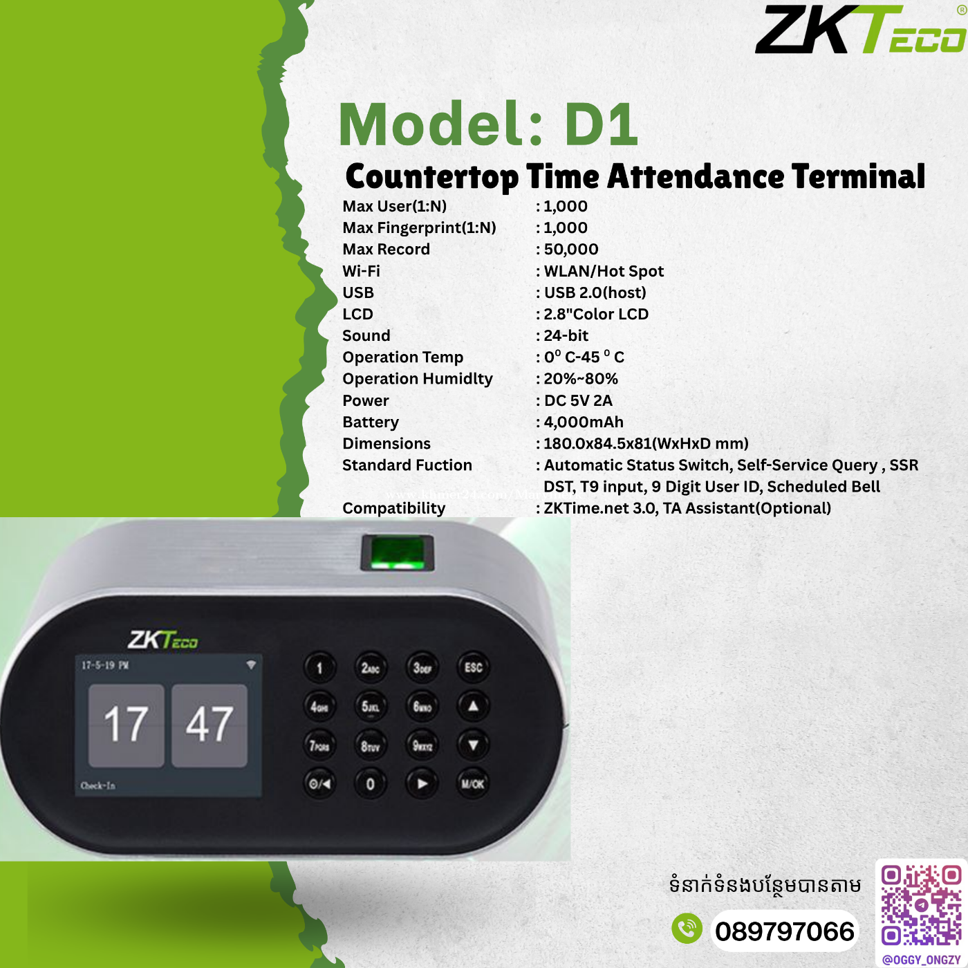 ZKTeco Fingerprint and ID Card Attendance ✅Model: D1 ☎ទំនាក់ទំនងជាវផលិតផល: ☎️Smart: 0963430xxxClick To Call ☎️Cellcard: 089797xxxClick To Call 📱ចុចចូល Telegram: https://t.me/Oggy_ongzy 👉Facebook Page: #ProcessSolution 🏠ផ្ទះលេខ 20N ផ្លូវលេខ K4B សង្កាត់អូរបែកក្អម ខណ្ឌសែនសុខ រាជធានីភ្នំពេញ. 🗺ប្រាប់ពីទីតាំង:goo.gl/maps/2ZAZ6Bb6P6jPUS588 #ZKTeco #wooribankcambodia #Bank #Cambodia #HIKVISION #SP #clinic #TPLink #ptz #power #4G #solar #Omada #optic #phnompenh #home #office #Install #cables #switch #INTERNET #4G #LTE #model #portsmouth #rackmount #archery #router #Lemorele #SD #ZKTeco #rigal #HP #onvswitch #Rongta #Huawei #SD #aula #Rungta #Botslab #FD #canon #SD #Epson