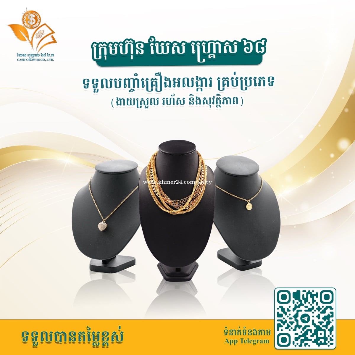 ក្រុមហ៊ុន បញ្ចាំស្របច្បាប់ ឃែសហ្គ្រោស៦៨ ឯ.ក ដែរមានអាជ្ញាប័ណ្ណពីក្រសួងត្រឹមត្រូវ ខាងយើងមានទទួលបញ្ចាំ ម៉ូតូរថយន្ត នឹងឯកសាររថយន្តគ្រប់ប្រភេទ គ្រឿងអេឡិចត្រូនិចគ្រឿងអលង្ការ ជាមួយការ ប្រាក់សមរម្យ ទទួលបានតម្រូវការខ្ពស់ នឹងសុវត្ថិភាពខ្ពស់ជូនលោកអ្នក💯 សម្រាប់ពត៌មានលម្អិត ☎️0889280xxxClick To Call / 077977xxxClick To Call / 016737xxxClick To Call