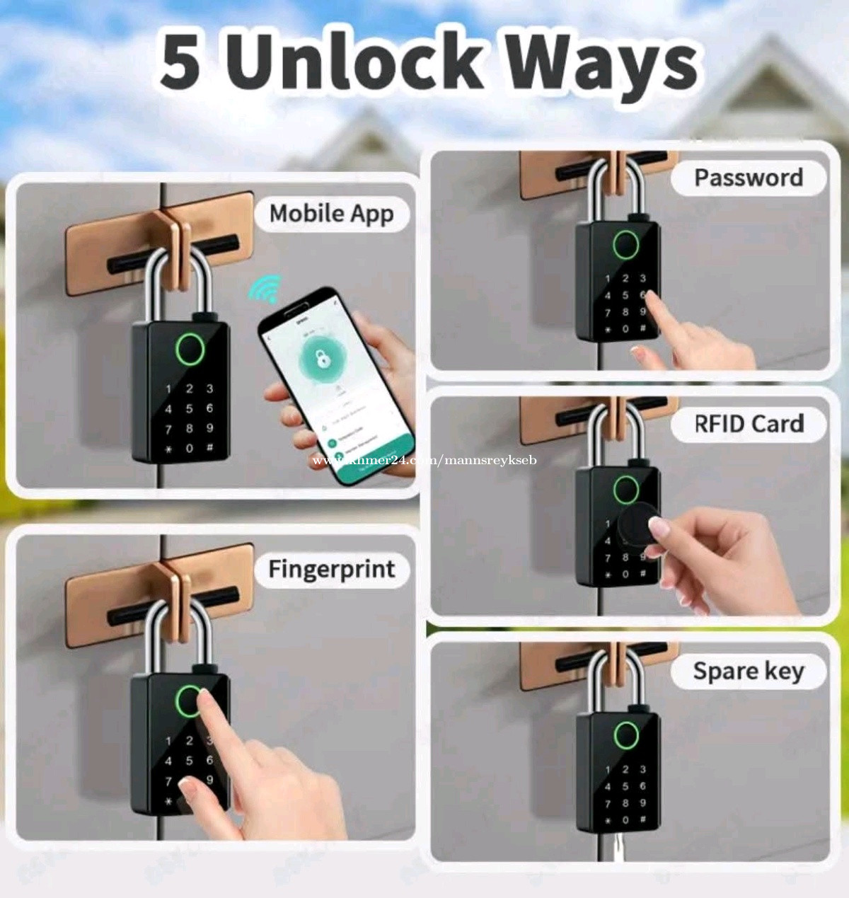 សោរស្គេនក្រយ៉ៅដៃ ងាយស្រួលមិនបាច់យកកូនសោរតាមខ្លួន អាចដោះសោដោយស្គេនក្រយ៉ៅដៃ ដាក់លេខកូដ និងបញ្ជាតាមស្មាតហ្វូន Tuya app ថ្មកាន់បានយូរ