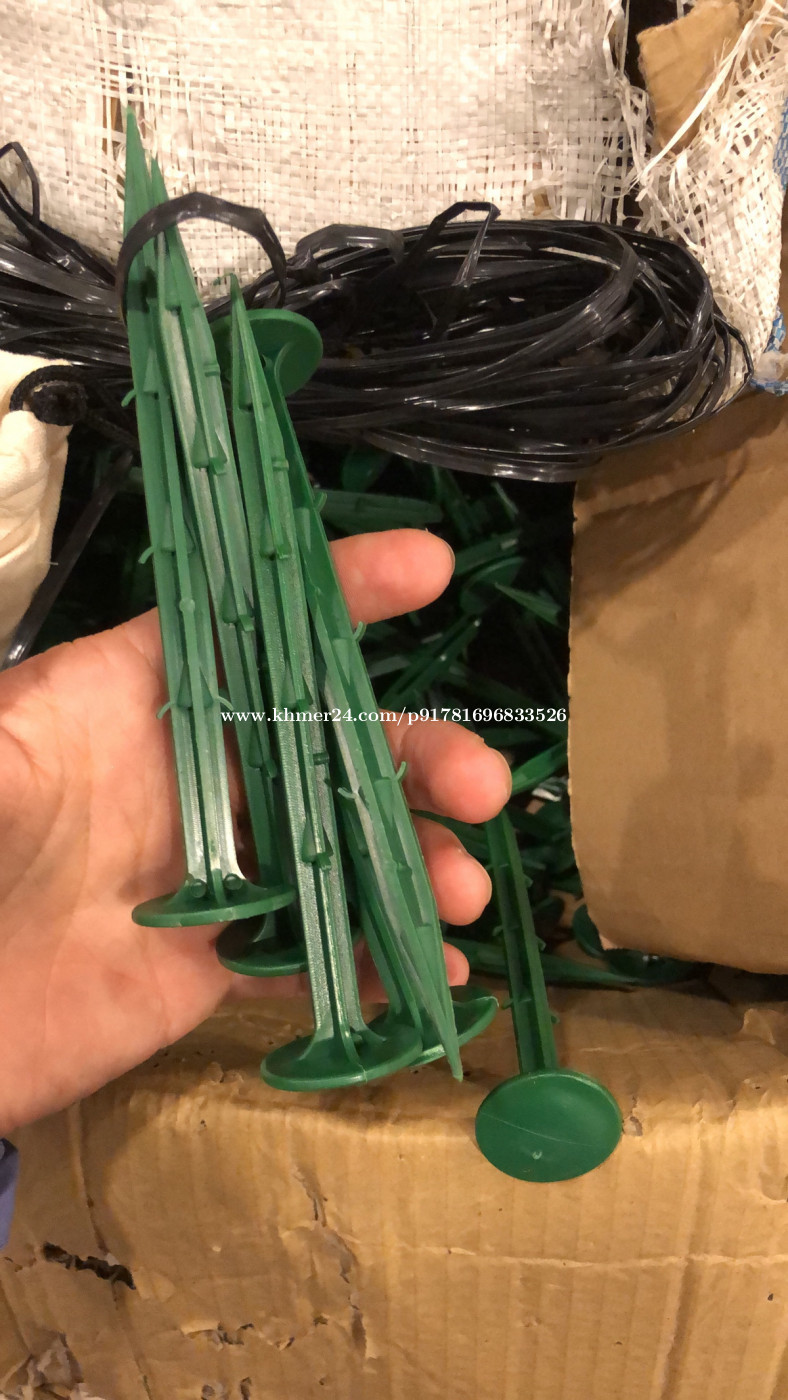 ស្នឹងឬម្ជុលសម្រាប់ដោតខ្ទាស់កន្ទេលគ្របស្មៅ តង់ កៅស៊ូគ្របរង មាន២ជម្រើស។ ទី១៖ ប្រភេទដែក ដោតបានជម្រៅ15cm (១តឹកកន្លះ). តម្លៃ១០០ដើម 3$ ទី២៖ ប្រភេទជ័រ ដោតបានជម្រៅ16cm (១តឹកកន្លះ). តម្លៃ១០០ដើម 6$ ពួកយើងក៏មានលក់កន្ទេលគ្របស្មៅ (ឬអាចហៅបានថា ក្រណាត់របាំងស្មៅ ក្រណាត់ទេសភាព ស្បៃគ្របគល់ដំណាំ ស្បៃគ្របការពារស្មៅដុះ ។ល។ ខ្នាតមាន៖ ១៖ 1m x 1m ១៖ 1.5m x 1.5m ១៖ 1m x 100m ១៖ 1.5m x 100m ១៖ 2m x 100m Ground nail or metal pins can be used to secure the weed mate or any other types of ground from wind blowing. The ground nail has 02 options: 1. Metal ground nail (15cm deep). 3$ for 100 pieces. 2. Plastic ground nail (16cm deep). 6$ for 100 pieces. We also supplies weed barrier fabric / landscape fabric / weed mate which can be used to block grass to grow in your yard or garden. Sizes are above.