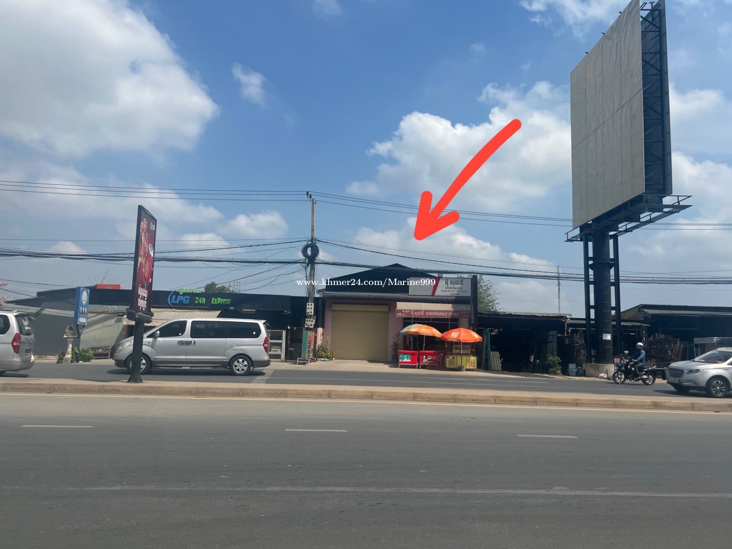ហាងសម្រាប់ជួល ទីតាំងល្អ អាចបើកអាជីវកម្មបាន នៅលើផ្លូវជាតិលេខ១ មុខបុរីប៉េងហ៊ួតបឹងស្នោរ