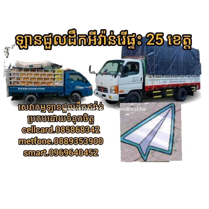 1-ឡានជួលដឹកអីវ៉ាន់ 25 ខេត្តក្រុង។ប្រកបដោយទំនុកចិត្ត។ 2-សេវាកម្ម 24 ម៉ោងមុន.និងមានទំនួលខុសត្រូវ 3-មានជាងដោះតុទូមានបទពិសោបយូរឆ្នាំ 4-ដឹកគ្រឿងសំណង់អីវ៉ាន់នៅផ្ទះ.ហ្នឹងអីវ៉ាន់គ្រប់ប្រភេទ smart.0969640xxxClick To Call metfone.0889353xxxClick To Call cellcard.085868xxxClick To Call