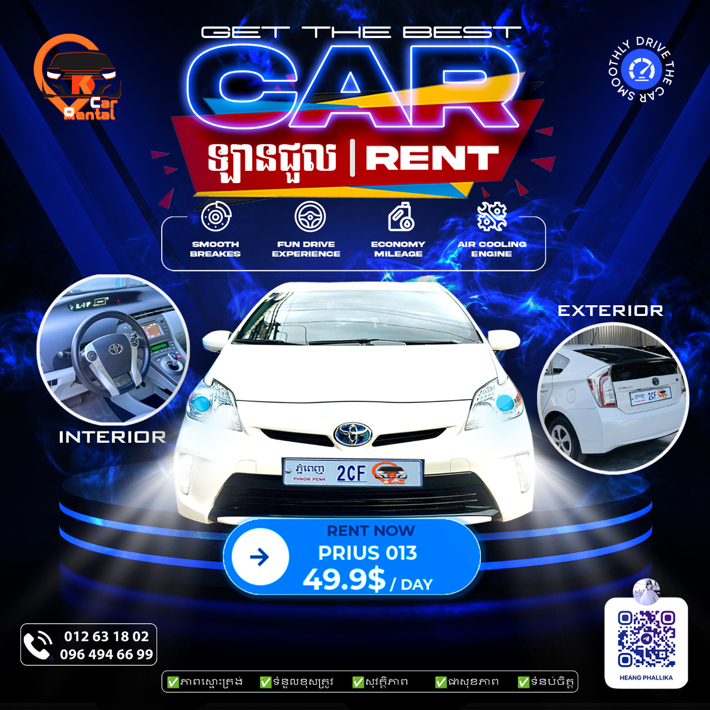👉👉យើងខ្ញុំមានឡាន Prius 013 ជួលប្រចាំថ្ងៃ ** ជួលជាថ្ងៃ 49.9$ ក្នុងមួយថ្ងៃ ** ជួលជាអាទិត្យ 295$ ក្នុងមួយអាទិត្យ ** ជួលជាខែ 699$ ក្នុងមួយខែ ↗️ ឡានមានធានារាប់រង មានAndroidស្រាប់ 🛎🛎 បើមានតម្រូវការអាចទាក់ទងមកបាន: 📞☎️ 012631xxxClick To Call / 0964946xxxClick To Call 📲 Telegram Chat 💬 👉 https://t.me/Phallika_Heang 👉 https://t.me/Ouddhom 📲 Telegram Channel | គ្រុបតម្លៃឡាន: https://t.me/DK_CAR_RENTAL_PP ទីតាំងចំកណ្តាលក្រុង ⛳️🏁 https://maps.app.goo.gl/HRYgd8wUNqbhWdyz7?g_st=it ✅ ទំនប់ចិត្ត ✅ ភាពស្មោះត្រង់ ✅ ទំនួលខុសត្រូវ ✅ សុវត្តិភាព ✅ ផាសុខភាព ↗️🚙List price | តារាងតម្លៃ CAR FOR RENT: 🚖 #Prius 2005 ដល់ 2009 មួយថ្ងៃ 29.9$ 🚘 #Prius 2010 ដល់ 2015 មួយថ្ងៃ 49.9$ 🚖 #Lexus RX 330 មួយថ្ងៃ 49.9$ 🚘 #Highlander មួយថ្ងៃ 39.9$ 🚖 #Starex 013 មួយថ្ងៃ 49.9$ 🚘 #Alphard 014 មួយថ្ងៃ 69.9$ 🚖 #GTVKain 2025 មួយថ្ងៃ 79.9$ ⚠️ ពេលភ្ញៀវប្រើប្រាស់ ហើយឡានខូចតាមផ្លូវ ខាងក្រុមហ៊ុនយើងខ្ញំ មានឡានប្តូរជូនថ្មី និង រាប់រងរាល់ការចំណាយទាំងអស់ 👉🫰ឯកសារងាយៗ 👉🫰លុយកក់តិចតួច 50$ 👉🫰សេវាកម្មរហស័ទាន់ចិត្ត 24/7