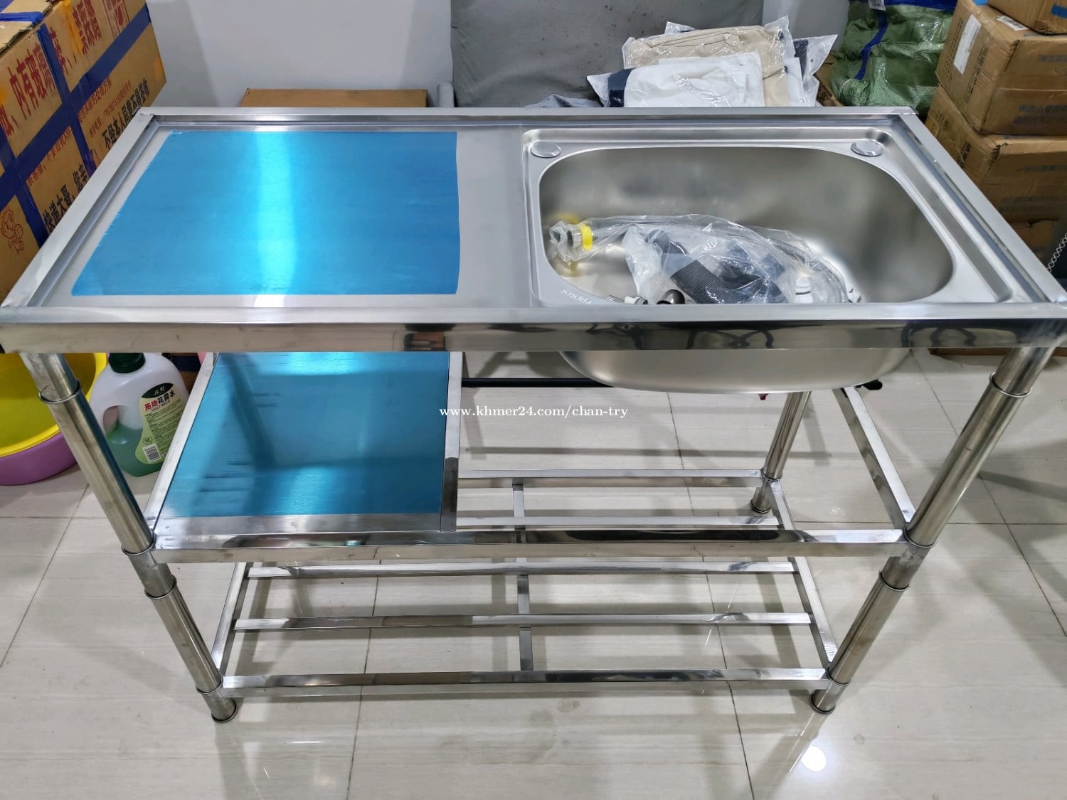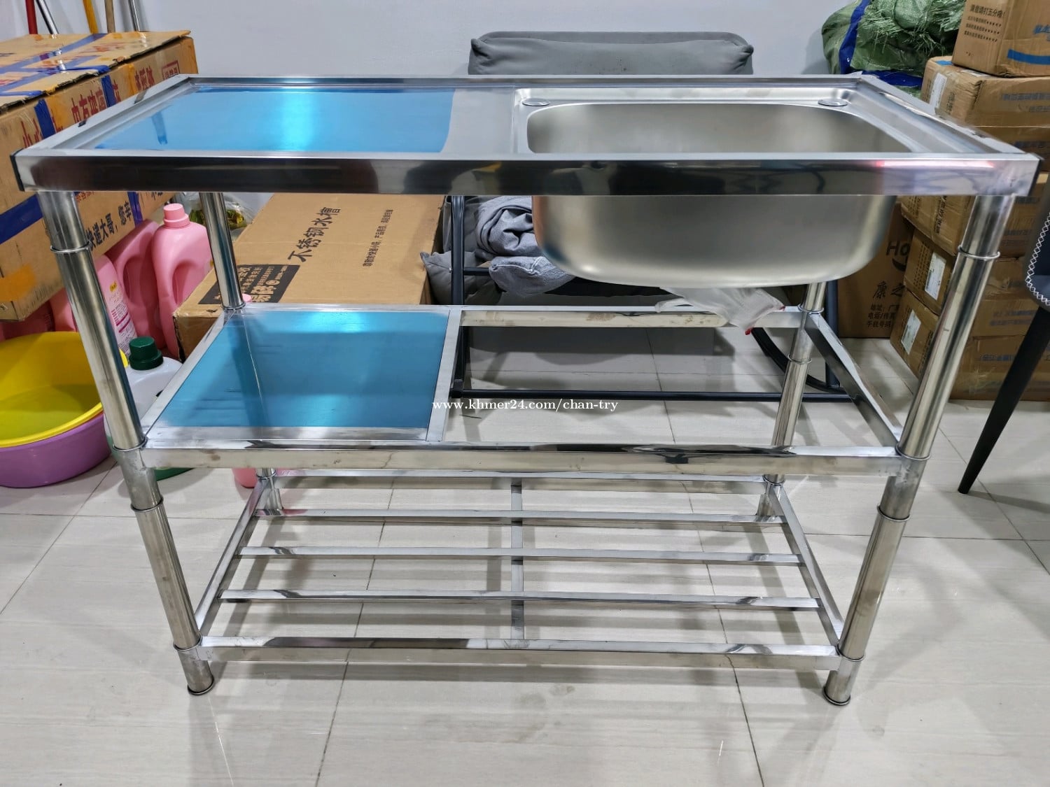 ឡាប៊ូលាងចានអ៊ីណុក ថ្មី ខ្នាត 1m x 0.5m បីធ្នាក់ (56$) ខ្នាត 1.3m x 0.5m បីធ្នាក់ (68$) ទីតាំងជិតស្ពានឬស្សីកែវ 0968303xxxClick To Call