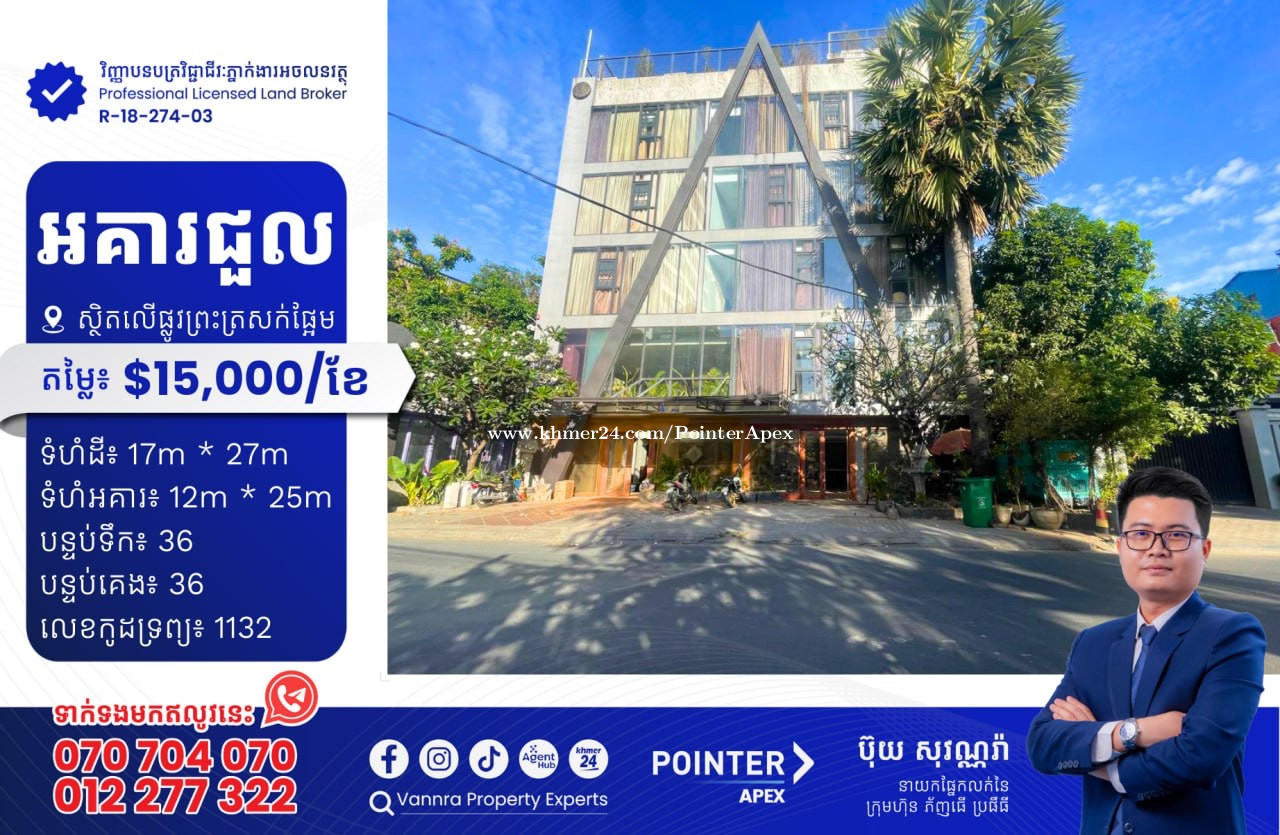 អគារជួលនៅលើផ្លូវព្រះត្រសក់ផ្អែម សម្រាប់ជួល: $15,000 ទំហំដី: 17m x 27m ទំហំអគារ: 12m x 25m បន្ទប់គេង: 36 បន្ទប់ទឹក: 36 🔐លេខកូដអចលនវត្ថុ៖ 1132 ស្ថិតនៅលើផ្លូវព្រះត្រសក់ផ្អែម សង្កាត់ទន្លេបាសាក់ ខណ្ឌចំការមនភ្នំពេញ ——————————— ទាក់ទងមកឥលូវនេះ៖ Call: 070704xxxClick To Call / 012277xxxClick To Call Telegram: https://t.me/vannraaa 微信号: vannra-experts - Channel: https://t.me/vannrapropertyexperts - Tiktok: https://www.tiktok.com/@vannra_property_experts - Facebook: https://www.facebook.com/vannra.phnompenh.property/