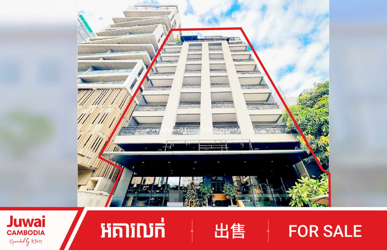 BUILDING FOR SALE Located: Khan Boeng Keng Kang, Phnom Penh. For Sale: $7M - Monthly income: $xx,xxx/month - Land area: 18m x 30m (524m2) - Built-up area: 3,600m2 - Height: 9 storeys - Rooms: 48 - Parking: 8 Best use: Hotel ID: SS0143