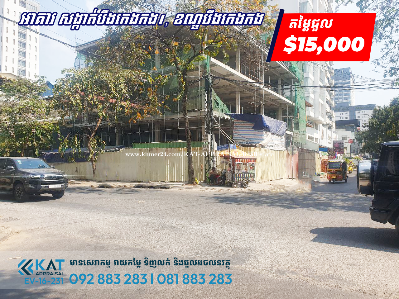 អាគារសម្រាប់ ជួល | Building For Rent - តម្លៃជួល | Rent Price : $15,000 ចរចា - កុងត្រា | Contract : 5 Y- 10 Y - ផ្ដល់ពេលសម្រាប់សាងសង់ 3 ខែ - ទំហំដី | Land Size: 20 m × 30 m - ទីតាំង/ Location: BKK1 សង្កាត់បឹងកេងកង1, ខណ្ឌបឹងកេងកង, រាជធានីភ្នំពេញ ។ Tel: 092883xxxClick To Call l 081883xxxClick To Call Telegram Chat : https://t.me/katappraisalsupport Telegram Channel : https://t.me/KAT_APPRAISAL