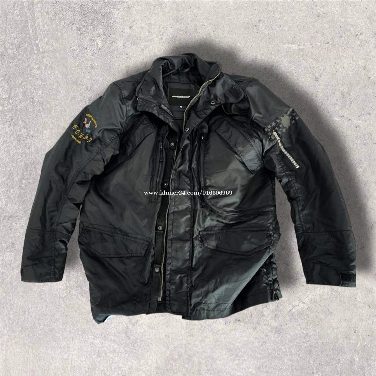 អាវម៉ូតូធំ មានជរ័ការពារ👍 Motorhead Jacket Size M, Black (ខាងក្នុងអាវមាន២តង់ត្រជាក់ ដោះចេញបាន) Size M Kg 75ចុះ 🥇ធានាគុណភាពនៅថ្មី90% របស់ចំ 👉តំលៃ 39$📦រួមដឹកផ្ញើជូន 📞ខលទាក់ទង 016506xxxClick To Call -តេឡេក្រាម ✈️telegram https://t.me/BullFrog_Kh -ទីតាំងផ្ទល់⛳ https://maps.app.goo.gl/GDFDv8uLB6nSFVZi7?g_st=ipc 🔊 មុននិងមកទាក់ទងផង🙏