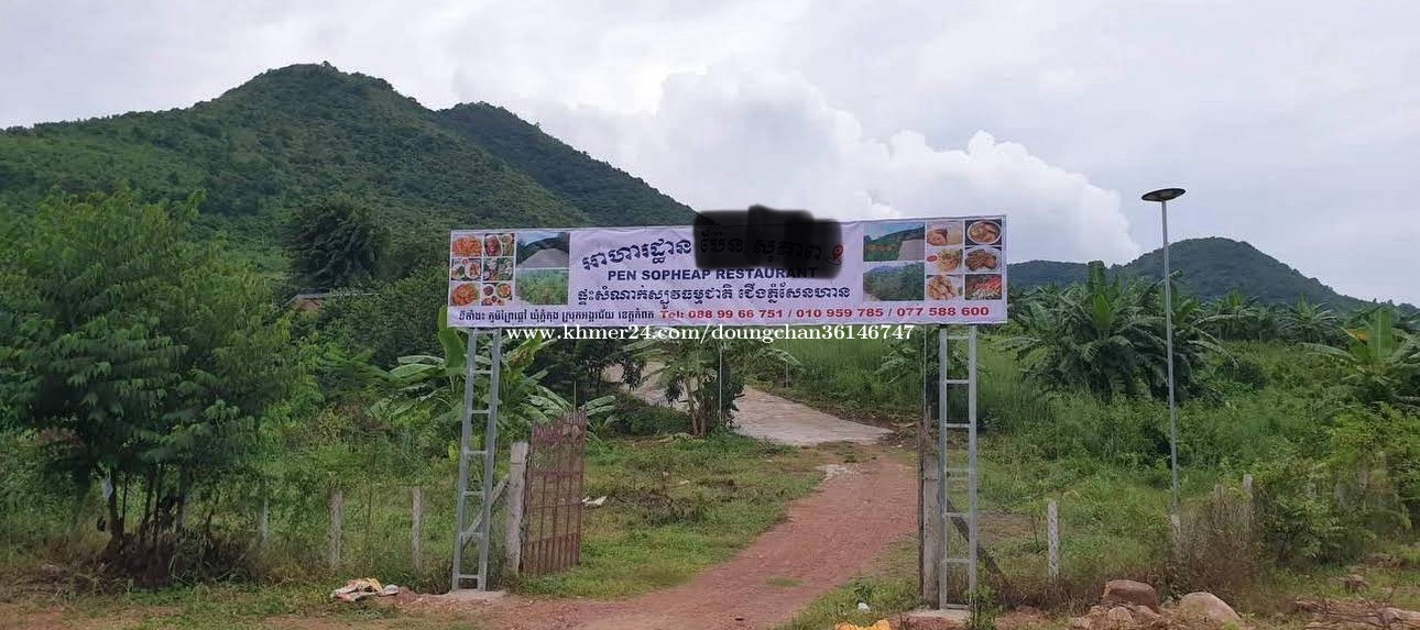អាហារដ្ឋានកញ្ចុះជើងភ្នំយើងខ្ញុំត្រូវការដាក់ជួលក្នុង1ខែ1500$ ទំហំដី1ហិចតា, មានកញ្ចុះស្រាប់និងបន្ទប់ផ្ទះសំណាក់ស្រាប់និងមានស្រះទឹក,ហើយជាប់ជើងភ្នំតែម្តង ទេសភាពស្អាត, ចង្ងាយចុះពីរផ្លូវជាតិតែ100ម៉ែត្រតែប៉ុណ្ណោះ, បើបងប្អូនចាប់អារម្មណ៍អាចទាក់ទងមកបាន 015360xxxClick To Call ទីតាំងនៅតានីទូកមាសខេត្តកំពត ភូមិព្រៃផ្តៅ ឃុំភ្នំកុង ស្រុកអង្គរជ័យ ខេត្តកំពត