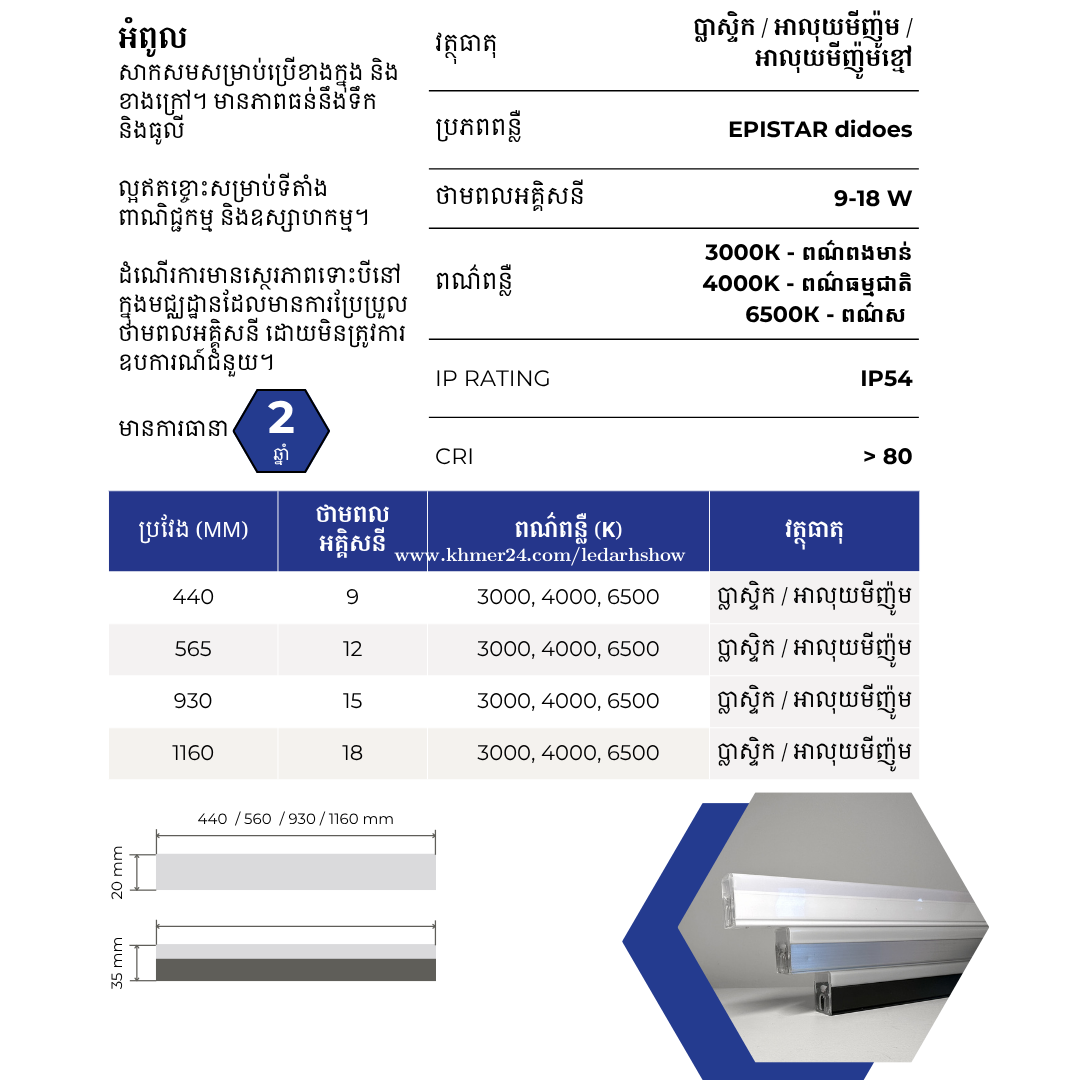 💡អំពូល LED Light ឬអំពូលដេគ័រតាមហាង អាចលេងម៉ូដបានតាមចំណង់ចំណូលចិត្ត😍 👉🏻មាន 4 ប្រវែងសម្រាប់ជ្រើសរើស (440mm, 565mm, 930mm និង 1160mm) 👉🏻មាន 3 ពណ៌ (ពណ៌ ស, ពណ៌ ពងមាន់, ពណ៌សបែកពងមាន់) #ដឹកជូនឥតគិតថ្លៃ - ធានាគុណភាពអំពូល 2 ឆ្នាំ - មានការឌីហ្សាញម៉ូដជូន FREE 超亮LED灯!!! 洗车灯 车库灯 蜂窝灯 美容院灯 沙龙灯 有四种尺寸供您选择:440毫米、565毫米、930毫米、1160毫米。 有 3 种不同的灯光颜色供您选择。 ◾️质保 2 年 ◾️多样款式 多种价位选择 ◾️按照您的面积免费为您设计!🤩 🛒 ទិញនៅលើ Khmer24: https://www.khmer24.com/arhshowcambodia 📩 Telegram: https://t.me/blairieshiee // https://t.me/arhshow ☎️ 0963508xxxClick To Call 📌 ចូលគ្រុបតេលេក្រាម https://t.me/ARHShowCambodia ————————— #Lighting #LED #LightDecor #ភ្លើង #អំពូល #អំពូលភ្លើង