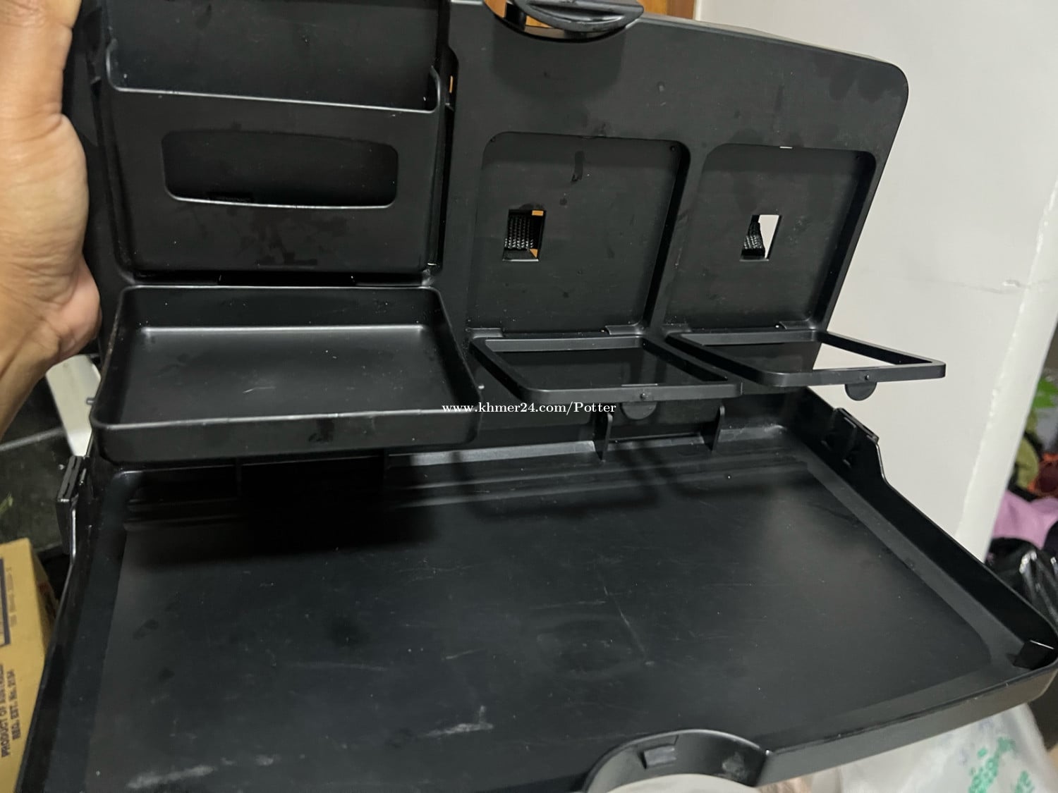 ឧបករណ៍ដាក់កែវទឹក ជើងទម្រទូរស័ព្ទ ក្នុងឡាន 7$ 4in1 car table holder ដាក់ក្រោយកៅអីឡាន ងាយស្រួលប្រើ