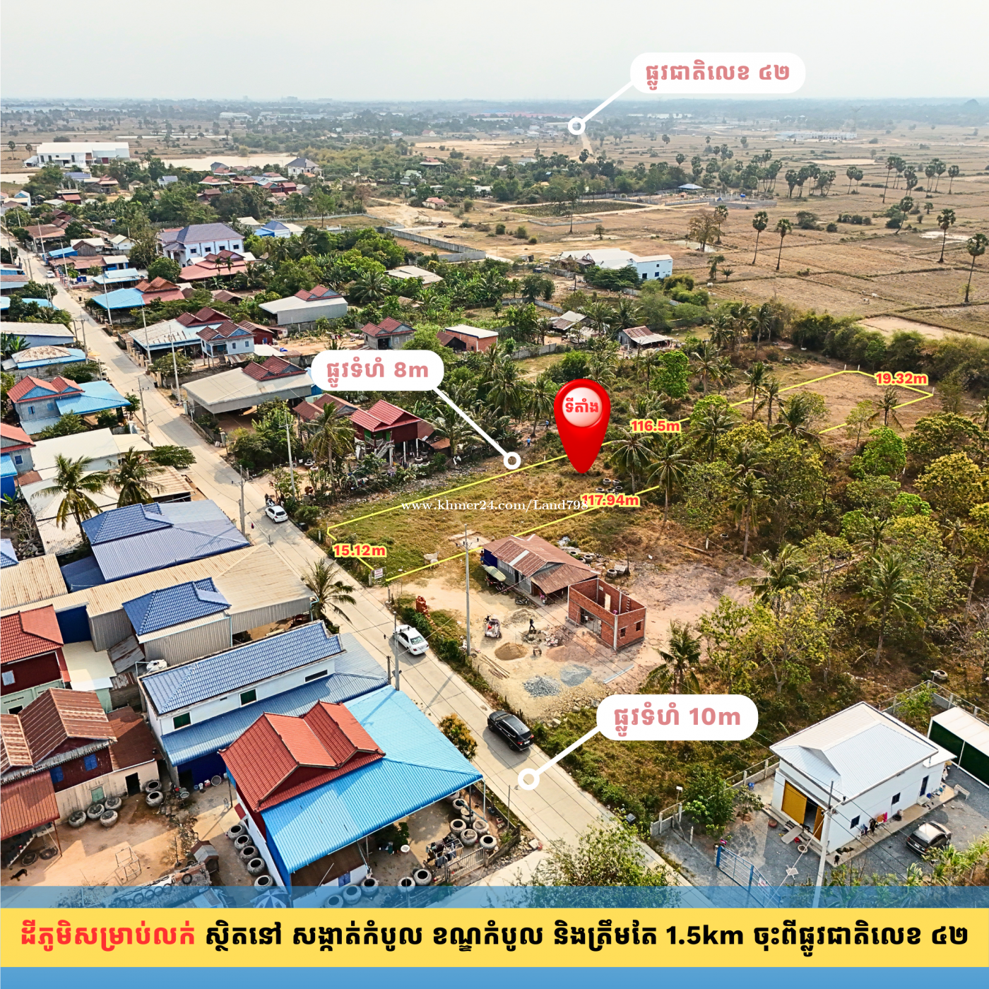 ⛳️ដីភូមិសម្រាប់លក់ ទំហំ 1955m² ក្នុងសង្កាត់កំបូល ខណ្ឌកំបូល 📺មើលវីដេអូនិយាយក្នុង YouTube ឆាប់ៗនេះ..! * កម្មសិទ្ធិប្លង់ រឹង (ចរចារត្រូវកាត់ប្លង់ជូន) . ទីតាំងខ្ពស់មិនលិចទឹក . មាន: ប្រព័ន្ធភ្លើង ប្រព័ន្ធទឹក និងប្រព័ន្ធ រួចស្រេច។ . ជាប់ផ្លូវរដ្ឋទំហំ 8m - 10m ចេញចូលមិនទាល់ ។ --------------- * តម្លៃលក់ | Price: $97,000 ចរចារ --------------- 📍ទីតាំង៖ ភូមិត្រឹប សង្កាត់កំបូល ខណ្ឌកំបូល រាជធានីភ្នំពេញ។ + យើងខ្ញុំមានសេវាធនាគារល្អៗជូន បើសិនជាអតិថិជនត្រូវការ។ 💁សំរាប់ព័ត៌មានលំអិតផ្សេងៗ៖ 📲092765xxxClick To Call /Cellcard 📲0967000xxxClick To Call /Smart 📲098765xxxClick To Call /Smart -Telegram ផ្ទាល់ខ្លួន https://t.me/phanna798 -Telegram Channel https://t.me/Land798 -Facebook page https://web.facebook.com/Land798