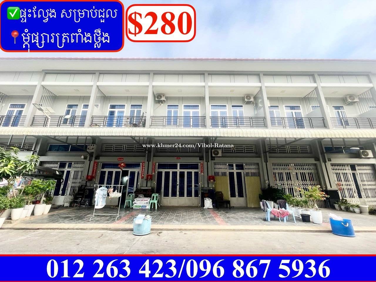 ✅ផ្ទះល្វែង សម្រាប់ជួល ម្តុំផ្សារត្រពាំងថ្លឹង (Code: R-00030) • តម្លៃជួល: $280 ចរចា • ទំហំផ្ទះ: 4.1m x 15m • ទំហំដី: 4.1m x 21.5m • បន្ទប់គេង: 4 បន្ទប់ទឹក 5 • អត់សម្ភារ • លក្ខខណ្ឌ: បង់ 1 កក់ 1 ☎️•012263xxxClick To Call Cellcard (telegram) •0968675xxxClick To Call Smart 👉Telegram: 012263xxxClick To Call https://t.me/Ratanarealtor168 👉សូមចូលមើលchannel ដើម្បីរកទីតាំងដែរអ្នកចង់បាន៖ https://t.me/rentalproperty168