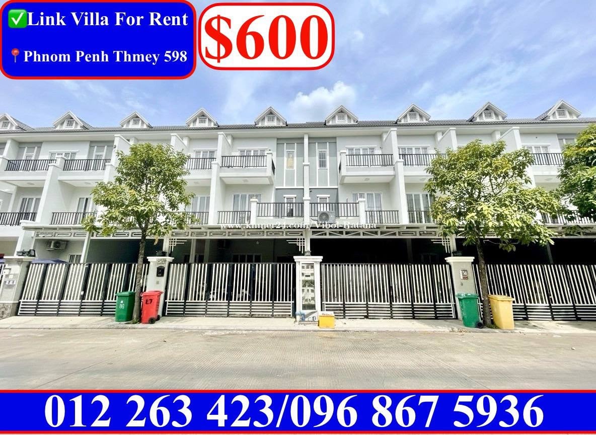 ✅វីឡាកូនកាត់ សម្រាប់ជួល នៅបុរីភ្នំពេញថ្មី 598 ជិត Aeon2 • តម្លៃជួល: $600 ចរចា • ទំហំដី 5.4m x 21m • ទំហំផ្ទះ 5.4m x 12m • បន្ទប់គេង 4, បន្ទប់ទឹក 6 • អត់សម្ភារ • នៅក្បែរ Aeon2, Camko, TK… ✅Link Villa For Rent in Borey Phnom Penh Thmey 598 near Aeon2 • Price: $600 negotiation • House size: 5.4m x 12m • Land size: 5.4m x 21m • Bedroom: 4, Bathroom: 6 • No Furniture • Near Aeon2, Camko, TK… ✅ 转角单人别墅出租 在 Borey Phnom Penh Thmey 598 靠近 Aeon2 • 租金价格 : $600 美金/可谈 • 建筑面积 : 5.4米 x 12米 • 土地面積 : 5.4米 x 21米 • 户型情况 : 4房, 6卫 • 家具: 没有家具 • 靠近 Aeon2, Makro, TK… ☎️•012263xxxClick To Call Cellcard (telegram) •0968675xxxClick To Call Smart 👉Telegram: 012263xxxClick To Call https://t.me/Ratanarealtor168 👉សូមចូលមើលchannel ដើម្បីរកទីតាំងដែរអ្នកចង់បាន៖ https://t.me/rentalproperty168