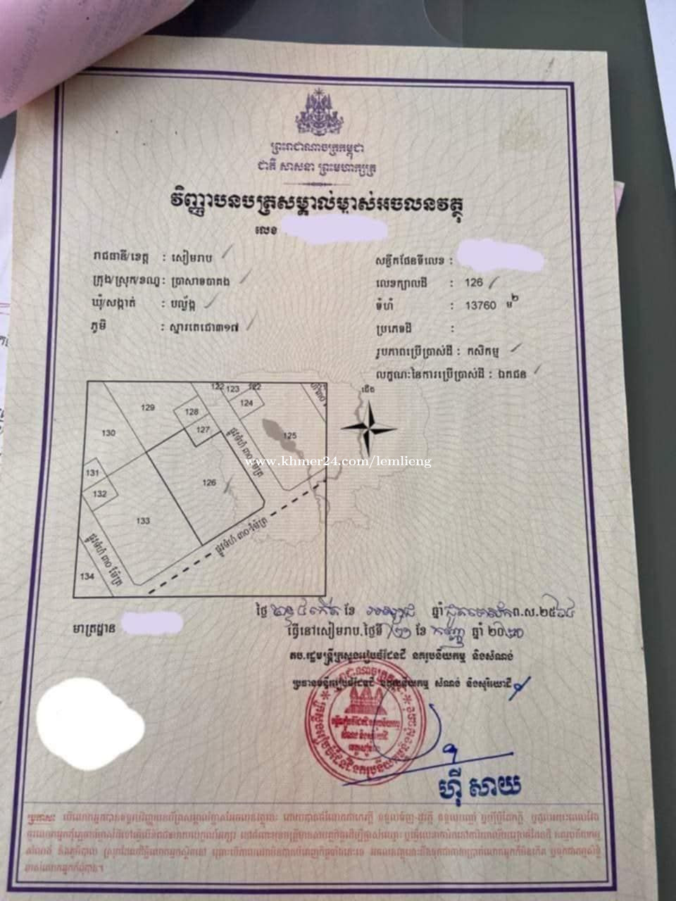 急售土地1.5公顷,价格低于市场价1平方米25美元,硬产权 暹粒, 巴孔寺, 暹粒 地理位置优越,紧邻国道,紧邻拐角路,靠近娱乐区、茶果(Tra Kot)和暹粒警察局。地处人口稠密的城镇,土壤肥沃,可用作农场种植农作物。