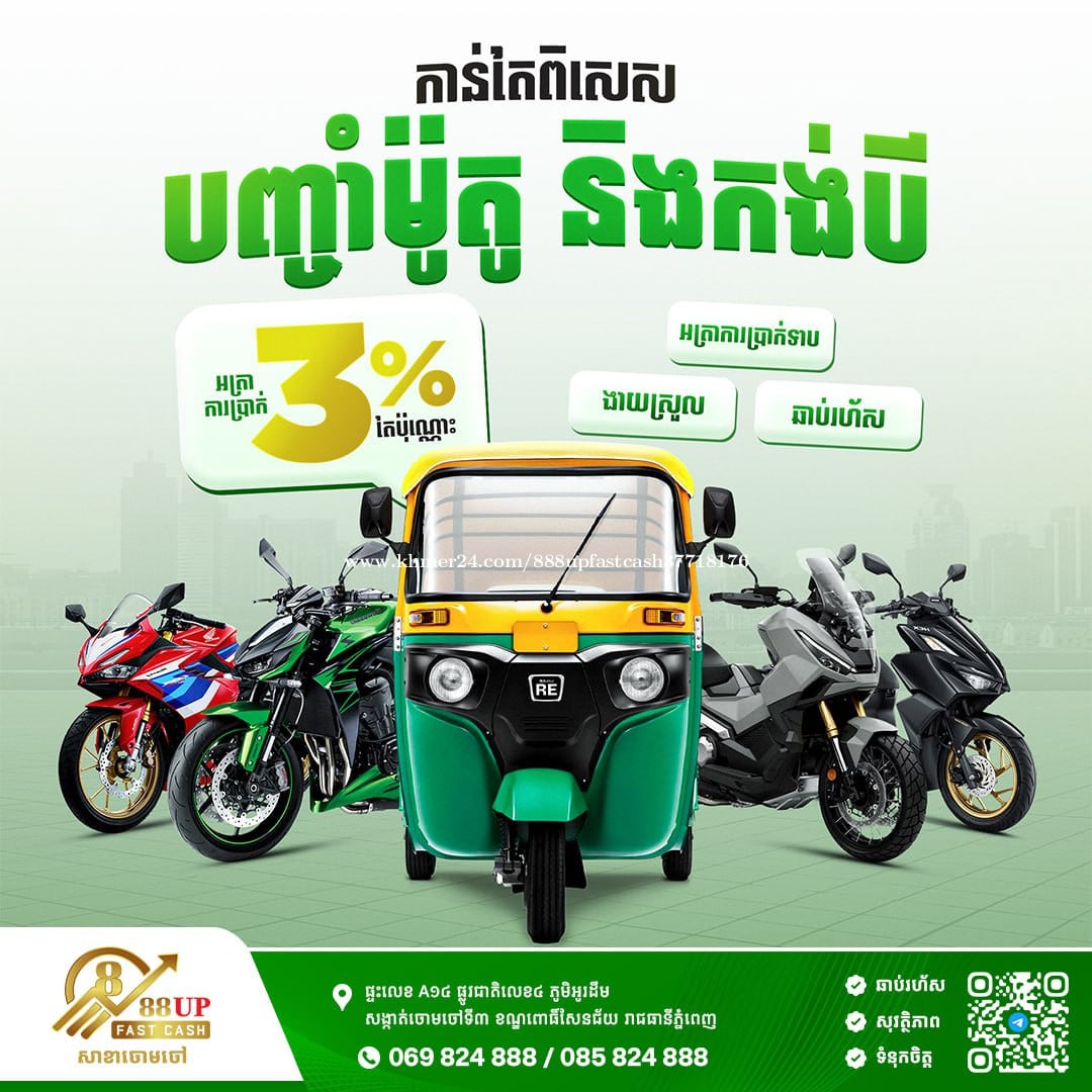 [English & ไธญๆ Below ] ๐๐ฒ แแแแ แถแแแแผแแผ แแทแแแแแแธแแแแแแแแแธ โ แแแแถแแแแ แถแแแฟแ แแ แแ แแทแแแถแแแแแฝแ โ แแปแแแแแทแแถแแแปแแ แทแแแแแถแ 100% โ แขแแแแถแแถแแแแแถแแแแถแแแแแนแแแ 3% แแแปแแแแแ! ๐ ---------------------------------- ๐๐ฒ Pawn all models of motorbikes and tuk-tuks โ Fast, quick, and easy pawning service. โ 100% trustworthy and secure. โ Low interest rate of only 3%! ๐ ---------------------------------- ๐๐ฒ ๅ ธๅฝๆๆๅๅท็ๆฉๆ่ฝฆๅๅๅ่ฝฆ โ ๅฟซ้ไพฟๆท็ๅ ธๅฝๆๅกใ โ ๅฎๅ จ100% ๅฎขๆทไฟๅฏ โ ไฝๅฉ็ไป 3%๏ผ๐ ๐แขแถแแแแแแถแ/Address: House No. A14, National Road No. 4, Ou Derm Village, Chamchao 3 Sangkat, Pou Senchey District, Phnom Penh. ๐แแธแแถแแแ แถแ/Location : GOOGLE MAP (https://maps.app.goo.gl/nB5FmGCngYg1qwmg8) ๐ฒแแแแแแถแแแแแแแ/More info click here : CHANNEL (https://t.me/cc888upfastcashchannel) ๐แแถแแแแแแแ แปแ แแธแแแ/Quick assessment click here: TELEGRAM (https://t.me/cc888upfastcash) ๐Website: 888UPFC.COM โ๏ธ Tel : 069824xxxClick To Call / 085824xxxClick To Call #PawnShop #888UpFastCash #PawnShopFinds #LowInterestRate