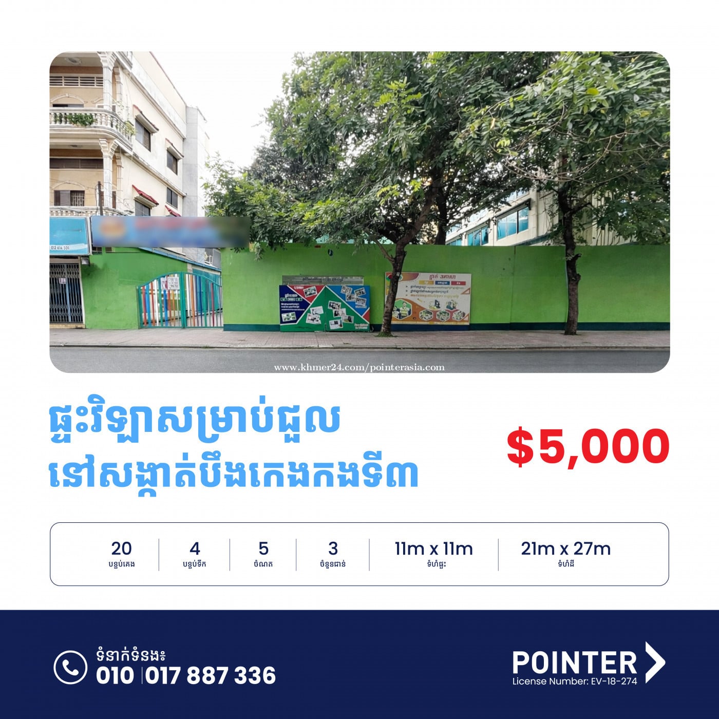 ๐ แแแแแแทแกแถแแแแแถแแแแฝแแแ แแแแปแแแแแแถแแแแนแแแแแแแแธแฃ -โโ Villa for Rent in Khan Boeng Keng Kang Ti Bei ๐ธแแแแแแแฝแ | Asking Rent: US$5,000 โ โแแแ แแแธโโ | Land Size : 21m x 27m โ แแแ แแแแแโ | House Size: 11m x 11m โ แแแแแแแแแ | Bedroom: 20 โ แแแแแแแแนแ | Bathroom: 4 โ แ แแแ | Parking: 5 ๐แแแแ แแนแแแแแแ ๐แแแแแผแแขแ แแแแแแแแ:โ LDH-001877 แแแแแถแแแแแแแถแแแแแแแ แแทแแแถแแ แปแแแทแแทแแแแแแแถแแ แแผแแแแแถแแแแแแแแแแถแแแแพแแแแแปแแแถแแแแแ โ๏ธHotline +8551088xxxClick To Call6 โ๏ธแฌ WhatsApp/telegram +8551788xxxClick To Call6 ๐ Telegramแ t.me/pointerproperty ๐Link to property: https://pointer.asia/2fmy5