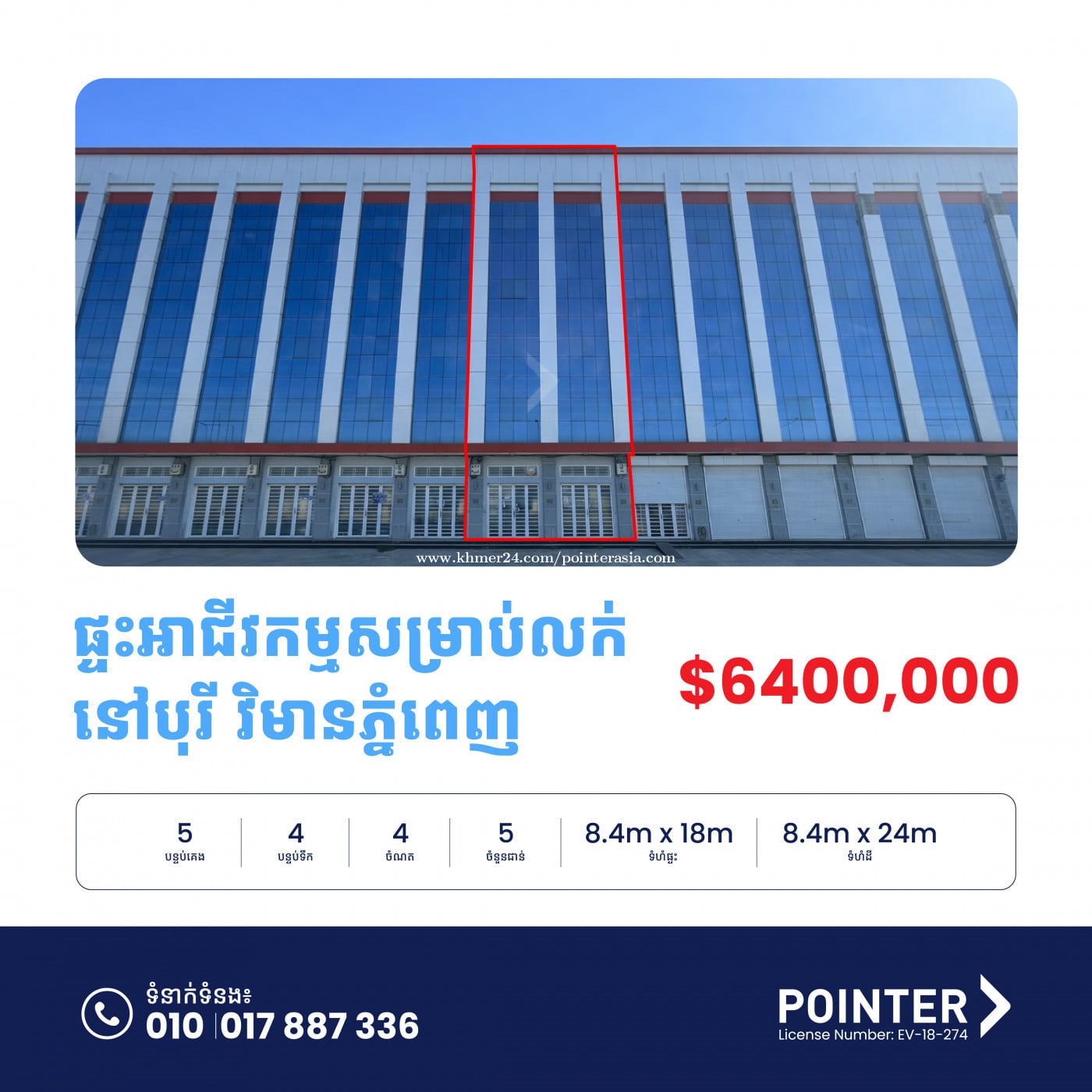 ๐ แแแแแขแถแแธแแแแแแแแแแถแแแแแแแ แแแแปแแแปแแธ แแทแแถแแแแแแแแ -โโ Shophouse for Sale in Borey Vimean Phnom Penh ๐ธแแแแแแแแ | Asking Sale: US$and 640,000$ โ โแแแ แแแธโโ | Land Size : 8.4m x 24m โ แแแ แแแแแโ | House Size: 8.4m x 18m โ แแแแแแแแแ | Bedroom: 4 โ แแแแแแแแนแ | Bathroom: 5 โ แ แแแ | Parking: 4 ๐แแแแ แแแแแแแธแแแ ๐แแแแแผแแขแ แแแแแแแแ:โ CMC-000220 แแแแแถแแแแแแแถแแแแแแแ แแทแแแถแแ แปแแแทแแทแแแแแแแถแแ แแผแแแแแถแแแแแแแแแแถแแแแพแแแแแปแแแถแแแแแ โ๏ธHotline +8551088xxxClick To Call6 โ๏ธแฌ WhatsApp/telegram +8551788xxxClick To Call6 ๐ Telegramแ t.me/pointerproperty ๐Link to property: https://pointer.asia/Gryt6