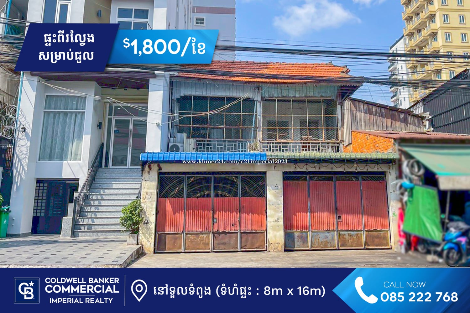 - តម្លៃជួល : 1,800$ ក្នុងមួ យខែ - ទំហំផ្ទះ : 8m x 16m - ទំហំដី : 8m x 21m - បន្ទប់គេង : 02 - បន្ទប់ទឹក: 02 - កុងត្រា 3ឆ្នាំឡើង ✨ ទីតាំងល្អនៅជិតផ្សារទួលទំពូង អាចជួលសម្រាប់បើកហាងអាជីវកម្មបាន។ ✉️សម្រាប់ព័ត៌មានលំអិត និងរូបភាពបន្ថែមសូមទំនាក់ទំនងៈ ☎️ 085222xxxClick To Call (Telegram) ☎️ 069993xxxClick To Call 🔗Telegram : https://t.me/imperialcomercial 🌐Website : https://imperialrealty.com.kh #ColdwellBankerCambodia