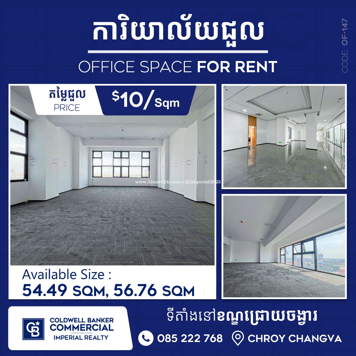 ๐ข Office Space For Rent at ๐ Chroy changva (OF-147) Available size 54.49sqm , 56.76sqm , 82.41sqm , 94.59sqm , 66.92sqm , 122.97sqm , 150.57sqm , 801.32sqm ๐ธ Price : 10$ /sqm โ Management fee : 2$/sqm โ Good location at Chroy Changva , good environment and many option for your choice . ----------- - Lease term : 1 years - Deposit : 1 months - Parking : 35$/car/month , 8$/motor/month - Electric : 0.25$/kwh - Water : 0.70$/m3 - VAT : excluding - Decoration security deposit : 1000$/unit (return 30days after decor finished) โ๏ธแแแแแถแแแแแแแแถแแแแขแทแ แแทแแแผแแแถแแแแแแแแแผแแแแแถแแแแแแแ โ๏ธ 085222xxxClick To Call (Telegram) โ๏ธ 069993xxxClick To Call ๐Telegram : https://t.me/imperialcomercial ๐Website : https://imperialrealty.com.kh #ColdwellBankerCambodia