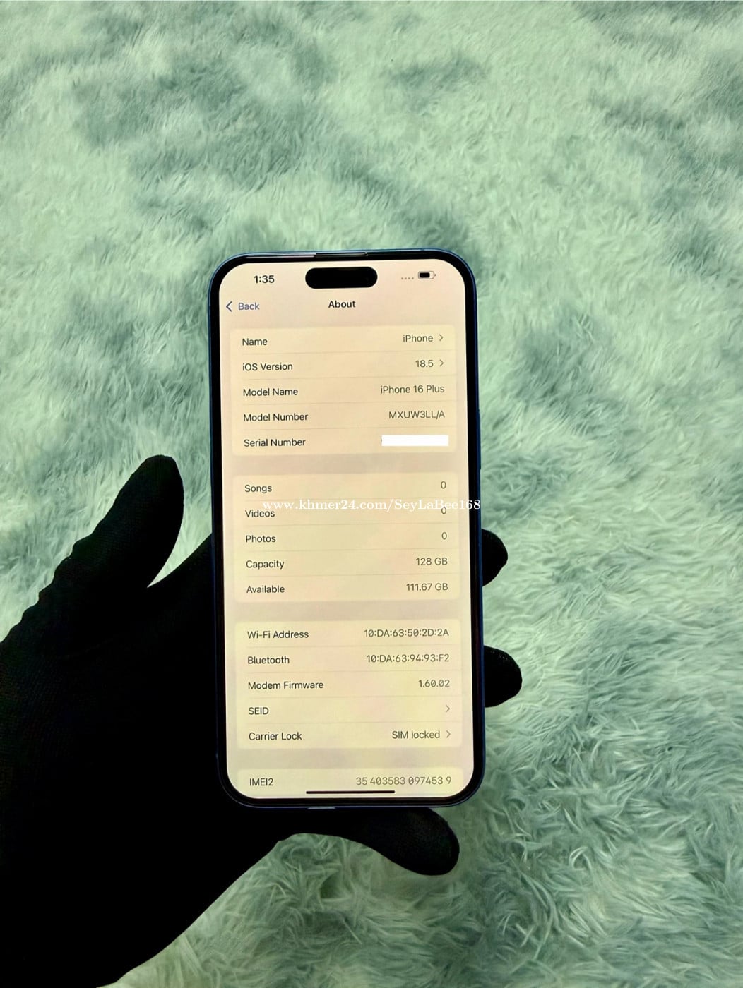 📱iPhone 16 Plus Color Ultramarine 💙 មួយទឹក ថ្ម100%🔋128G lock sim ប្រើបានសុីម2សេវាដើរស្មូតល្អគ្រប់ប្រពន្ធ័⭐️ 🛍️🎁Free Caseការពារ , Screenការពារ , ឆ្នាំងសាក Anker ,ខ្សែរសាកOriginal លែន 👍អ្វីដែលអ្នកឃើញគឺជាអ្វីដែលអ្នកទទួលបាន អីវ៉ាន់នៅក្នុងរូបយ៉ាងម៉េច នៅក្រៅគឺយ៉ាងនោះ។ 👉ធានាលើ ថាច់ និងម៉ាស៊ីន ១ខែ 📍ទីតាំង ទឹកល្អក់៣ ទួលគោក ភ្នំពេញ ☎️Tell:086908xxxClick To Call Telegram ☎️Tell:0888708xxxClick To Call Telegram: https://t.me/BSL_phone Channel: https://t.me/iPhoneBSL