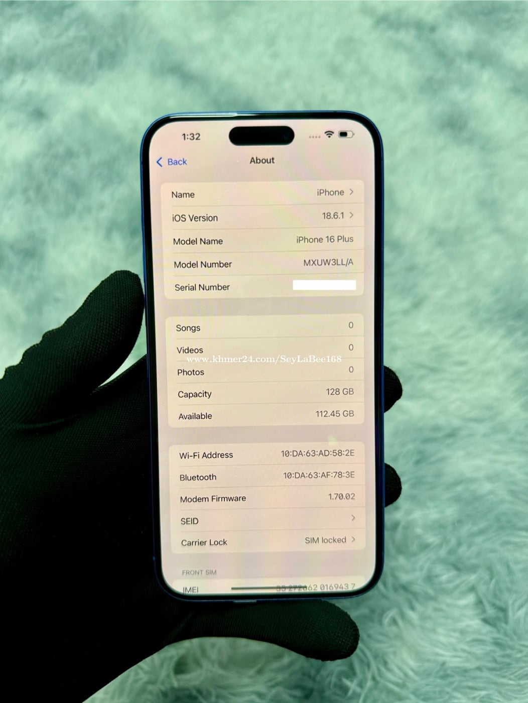 📱iPhone 16 Plus Color Ultramarine 💙 មួយទឹក ថ្ម 96%🔋128G lock sim ប្រើបានសុីម2សេវាដើរស្មូតល្អគ្រប់ប្រពន្ធ័⭐️ 🛍️🎁Free Caseការពារ , Screenការពារ , ឆ្នាំងសាក Anker ,ខ្សែរសាកOriginal លែន 👍អ្វីដែលអ្នកឃើញគឺជាអ្វីដែលអ្នកទទួលបាន អីវ៉ាន់នៅក្នុងរូបយ៉ាងម៉េច នៅក្រៅគឺយ៉ាងនោះ។ 👉ធានាលើ ថាច់ និងម៉ាស៊ីន ១ខែ 📍ទីតាំង ទឹកល្អក់៣ ទួលគោក ភ្នំពេញ ☎️Tell:086908xxxClick To Call Telegram ☎️Tell:0888708xxxClick To Call Telegram: https://t.me/BSL_phone Channel: https://t.me/iPhoneBSL