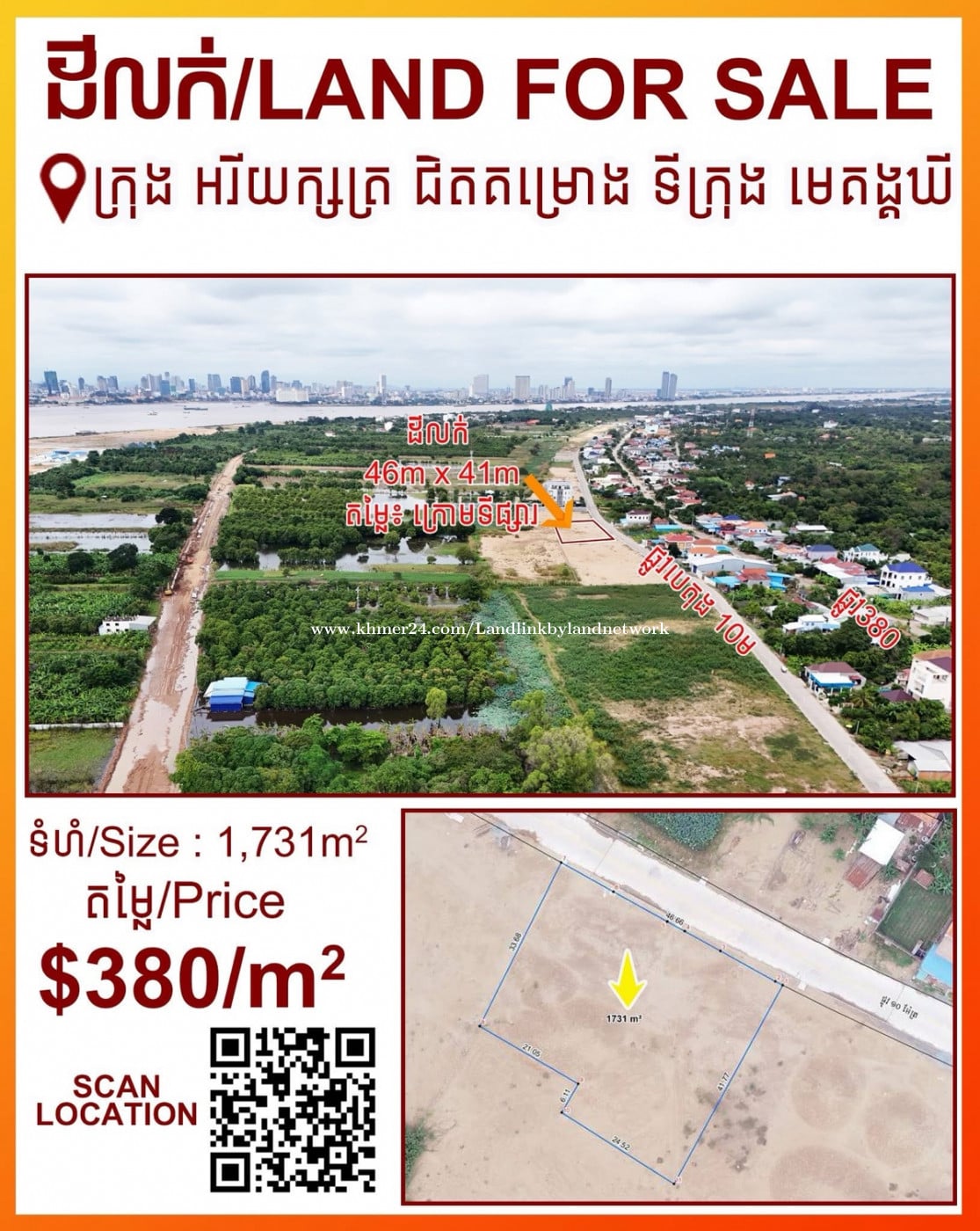 ๐Ÿ”ฅ แžŠแžธแž›แž€แŸ‹ แž‘แžธแžแžถแŸ†แž„แž›แŸ’แžขแžแŸ’แž›แžถแŸ†แž„ แž‘แž›แŸ‹แž˜แžปแžแž€แŸ„แŸ‡แž–แŸแž‡แŸ’แžš ๐Ÿ”ฅ ๐Ÿ“ แž€แŸ’แžšแžปแž„แžขแžšแžทแž™แž€แŸ’แžŸแžแŸ’แžš โ€“ แž˜แžพแž›แžƒแžพแž‰แž€แŸ„แŸ‡แž–แŸแž‡แŸ’แžš ๐Ÿ“ แž‘แŸ†แž แŸ†แžŠแžธ: 46m ร— 41m ๐Ÿ“Š แžŸแžšแžปแž”: 1,731 mยฒ (แž”แŸ’แž›แž„แŸ‹แžšแžนแž„) ๐Ÿ’ฐ แžแž˜แŸ’แž›แŸƒ: $380 / mยฒ ๐Ÿ‘ แž•แŸ’แž›แžผแžœแž”แŸแžแžปแž„แž‘แž‘แžนแž„ 10แž˜ (แžœแžทแžแžธแžงแž€แž‰แŸ‰แžถแž—แžบแž“แž•แž›แŸ’แž›แžถ) ๐Ÿ‘ แžŸแŸ’แžšแž”แž•แŸ’แž›แžผแžœ 380 ๐Ÿ‘ แž‘แžธแžแžถแŸ†แž„แžขแž—แžทแžœแžŒแŸ’แžแž›แžฟแž“ ๐Ÿ‘ แž›แŸ’แžขแžŸแž˜แŸ’แžšแžถแž”แŸ‹แžŸแž„แŸ‹แž•แŸ’แž‘แŸ‡, แžขแž‚แžถแžš, Condo แžฌแž‚แž˜แŸ’แžšแŸ„แž„แžœแžทแž“แžทแž™แŸ„แž‚ ๐Ÿ“ Map ๐Ÿ‘‡ https://maps.app.goo.gl/pBbF7BKxyq4tBvVn6?g_st=ic 077988xxxClick To Call ๐Ÿ‘‰ Inbox แžฌ Call แž”แžถแž“แž—แŸ’แž›แžถแž˜แŸ— (แž˜แŸ’แž…แžถแžŸแŸ‹แžŠแžธแž–แžทแž) #แžŠแžธแž›แž€แŸ‹ #แžขแžšแžทแž™แž€แŸ’แžŸแžแŸ’แžš #แž€แŸ„แŸ‡แž–แŸแž‡แŸ’แžš #แžŠแžธแžœแžทแž“แžทแž™แŸ„แž‚ #RealEstateCambodia