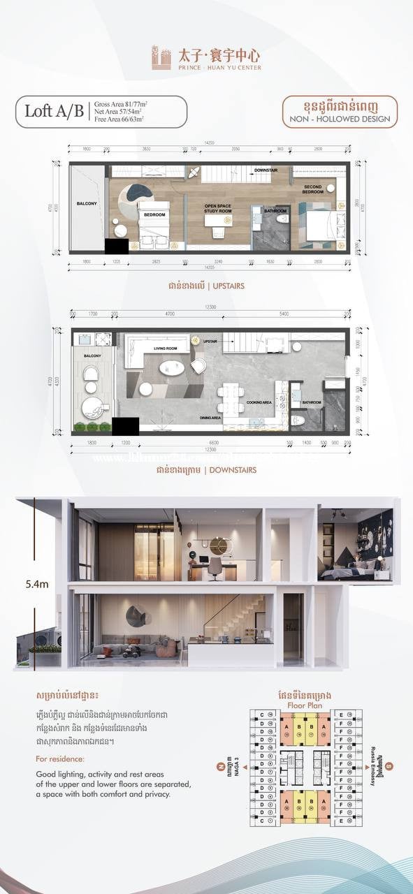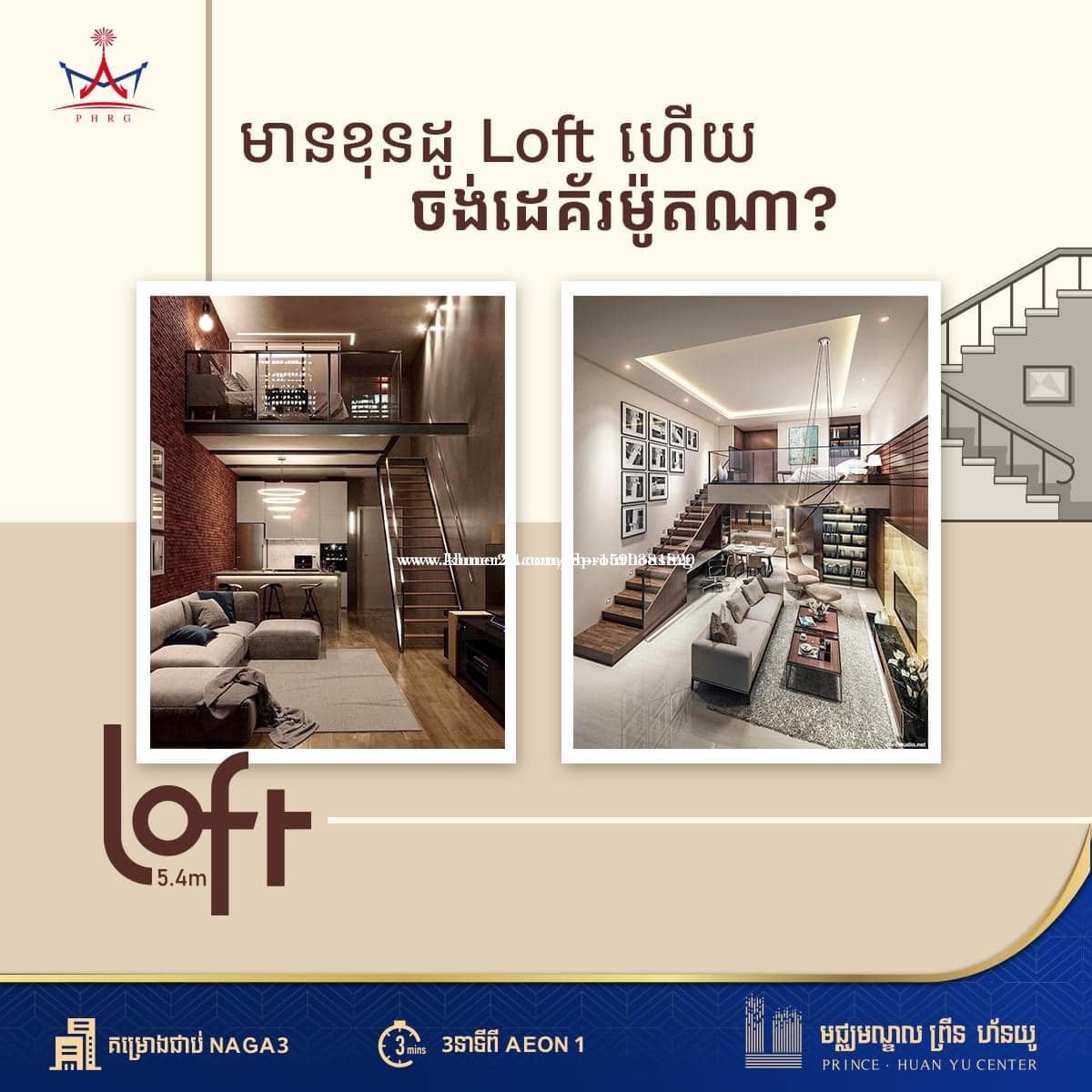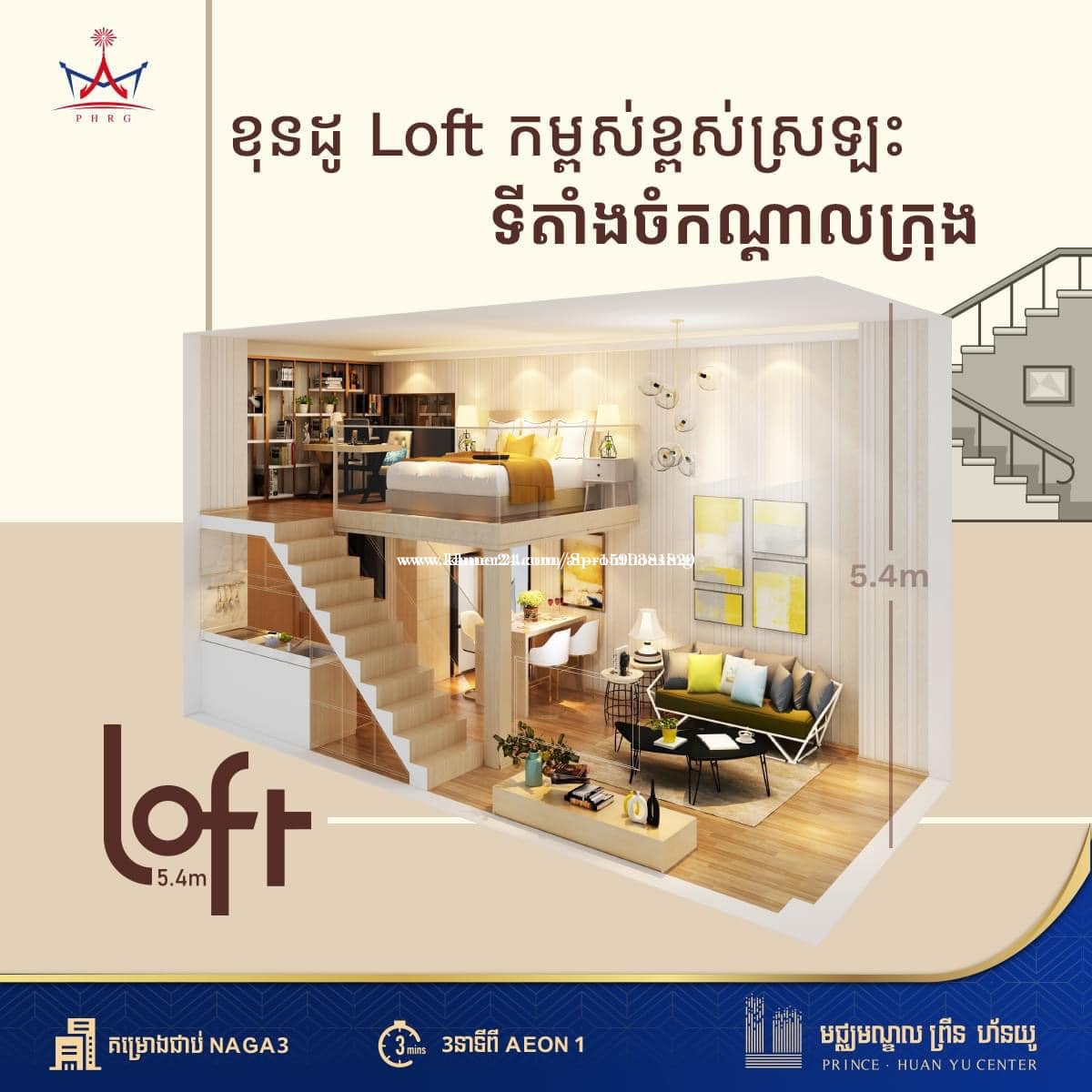 Type: Loft Unit (Bare Shell๏ผ Location: BKK1 Size: 42.93sqm (Gross Area) Floor: 7F Face: South View (Aeon Mall1) Price: $110,000 >Two adjoining Bare Shell Loft units (Unit 720 & Unit 721) listed for sale together. > Price is negotiable. > Loft Unit Condo have two floors. > Inside no interior design yet. > Easy going to Mall, Embassy, Entertainment Spot. > Easy rent out below have U-Mall. This is not just an apartment; it is a massive blank canvas waiting for your vision. Because these units are side-by-side, you have the rare opportunity to combine them into one expansive luxury residence. Imagine grand, high ceilings spanning a wide living area, a custom-built home office, and private master suites on the mezzanine level.