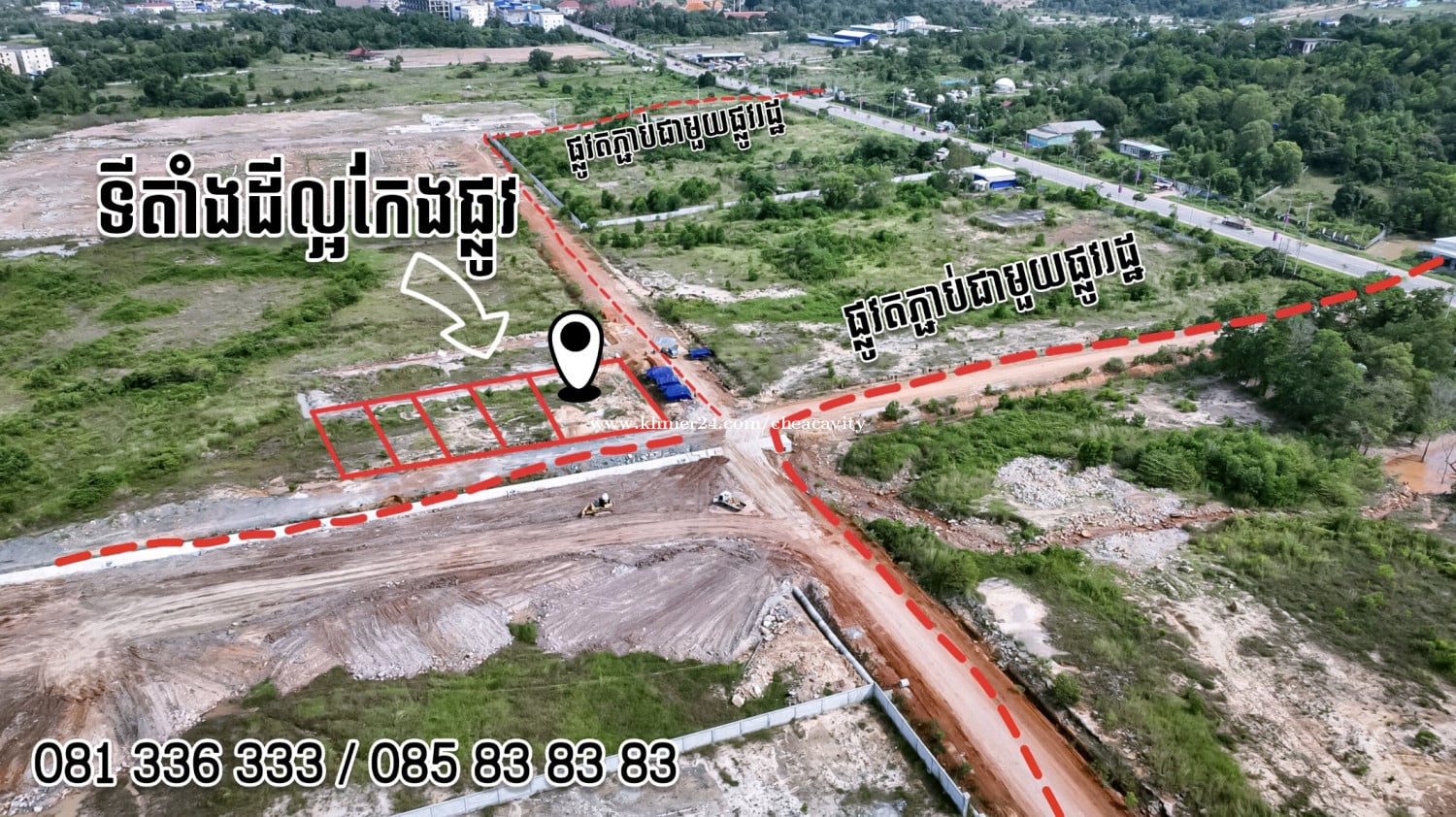 #ដីកែងផ្លូវជាប់មាត់ព្រែកអូរត្រះ - ទំហំមាន 10×30 25×30 - តំលៃ 1m²/5xx$ ចរចា - ប្លង់រឹង ☎️ 081333xxxClick To Call / 085838xxxClick To Call
