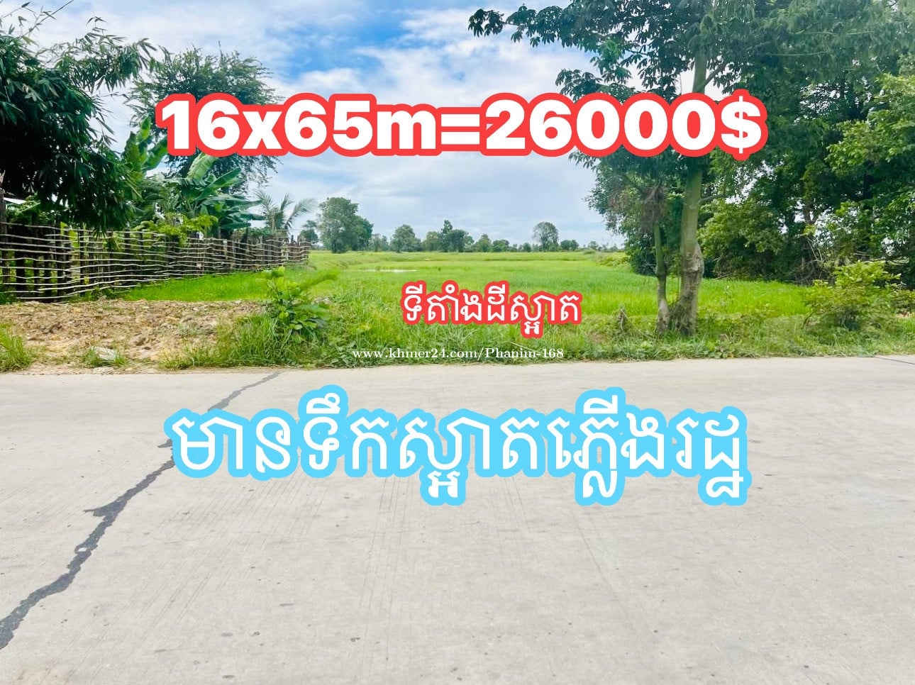 #ដីលំនៅដ្ឋានខ្នាតប្រកបអាជីវកម្ម១០០% #ដីមានទំហំ16x65m (ប្លង់រឹង) #លក់ជូនតម្លៃ26000$ ចរចារ 👉សក្តានុពលទីតាំងដី៖ *ដីមានប្រព័ន្ធទឹកស្អាត&ភ្លើងរដ្ឋ *ក្បាលដីជាប់ផ្លូវបេតុងផ្លូវមេទំហំ30m *ងាយស្រួលបើកអាជីវកម្មបាន១០០% *ចម្ងាយចុះតែ1kmពីផ្លូវជាតិលេខ41តែប៉ុណ្នោះ *ដីនៅទីប្រជុំជន ដីនៅកណ្តាលភូមិងាយស្រួលរស់នៅ *ឪកាសល្អសម្រាប់ទិញទុកចំណេញ_បើកអាជីវកម្ម_ធ្វើដីភូមិ_ធ្វើផ្ទះលំហែរ_ឬទិញទុកចែកកូនចៅរឹតតែល្អ 👉ទីតាំងចេញមកពីផ្សារថ្នល់ទទឹងផ្លូវជាតិលេខ4 តាមផ្លូវជាតិលេខ41 ដល់គីឡូលេខ29 បត់ឆ្វេង1km តាមខ្លោងទ្វារវត្តស្វាយចារ ដល់ទីតាំងដីតែម្តង 👉ទីតាំងចេញពីរង្វង់មូលចោមចៅតាមផ្លូវជាតិលេខ3 ដល់ផ្សារបាំងសី បត់ស្តាំតាមផ្លូវ145 ដល់ផ្សារស្លាបលែងបត់ស្តាំដល់គីឡូ29 បត់ស្តាំ1km តាមខ្លោងទ្វារវត្តស្វាយចារ ដល់ទីតាំងដីតែម្តង 🗺ទីតាំងដី៖ ឃុំស្តុក ស្រុកគងពិសី ខេត្តកំពង់ស្ពឺ Maps: https://maps.app.goo.gl/TeqwLHMjDAHkRWqm9?g_st=ic *ពត៌មានលំអិត៖ 015/095878xxxClick To Call តេលេក្រាម: https://t.me/Phanim_168 #ដីលំហែរលក់ #ដីភូមិលក់បន្ទាន់ #ដីស្រែលក់បន្ទាន់ #ផ្ទះលក់បន្ទាន់ #ដីលក់បន្ទាន់ #ដីភូមិលក់ធូរៗ #ដីឃ្លាំងលក់បន្ទាន់ #ឃ្លាំងលក់ធូរៗ #ដីលក់តម្លៃធូរៗ #everyone #everyonefollowers