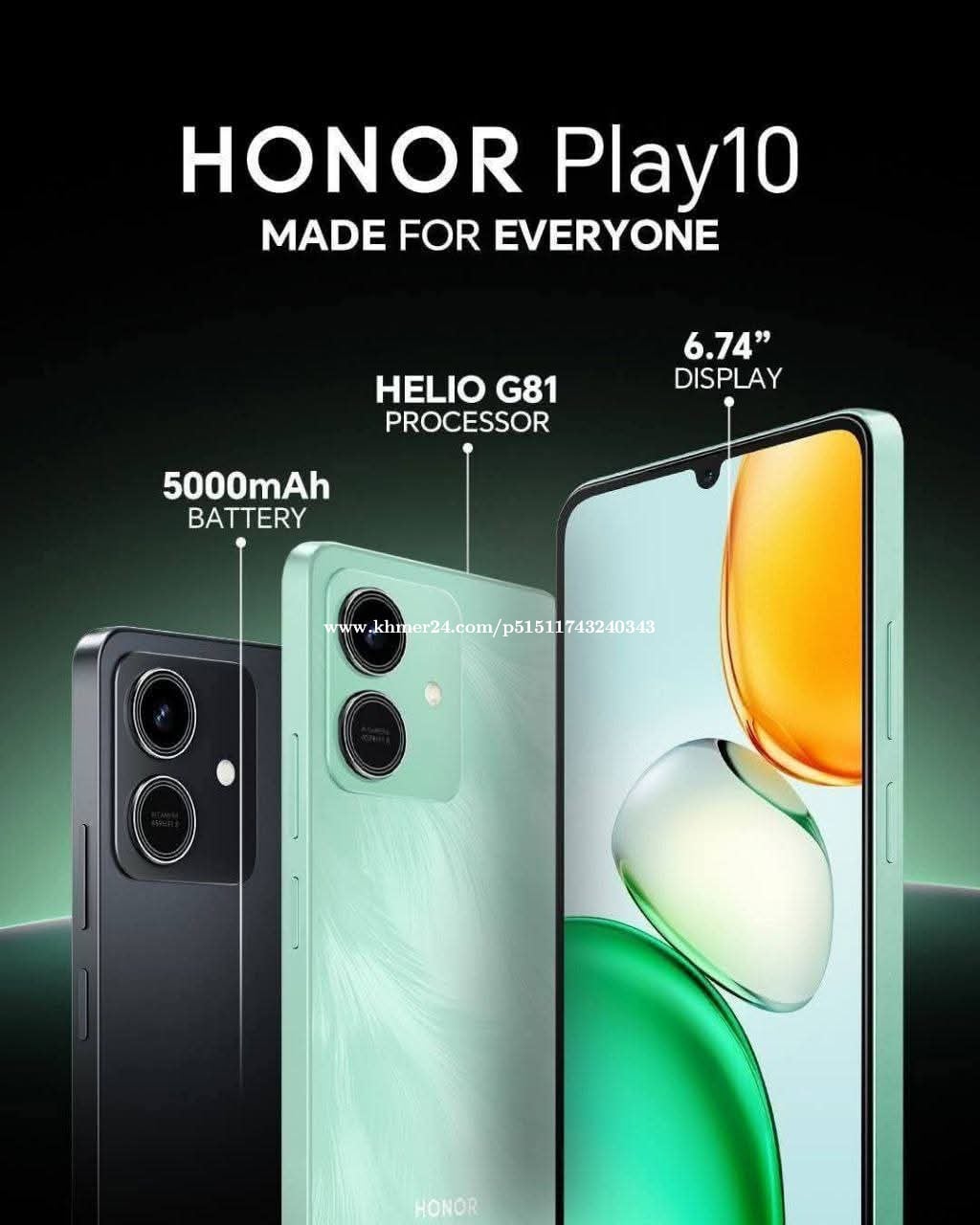 #តម្លៃលក់ជាផ្លូវការ HONOR Play 10 #តម្លៃត្រឹមតែ68ដុល្លារ មានអេក្រង់ធំ 6.74" ល្បឿនអេក្រង់90Hz បំពាក់ឈីប Helio G81 លេងហ្គេមប្រើលេងបណ្ដាញសង្គមបានរលូន 🔋ប្រើប្រាស់បាន២ថ្ងៃ។ 💥HONOR Play 10 តម្លៃត្រឹម68$ #ការថែមជូន 🎁 ស្គ្រីនការពារ 🎁 ស្រោមទូរសព្ទដ៏ស្រស់ស្អាត ------------------ 💥HONOR Pad X7 តម្លៃត្រឹម129$ #ការថែមជូន 🎁 ស្គ្រីនការពារ 🎁 ស្រោមទូរសព្ទដ៏ស្រស់ស្អាត @highlight