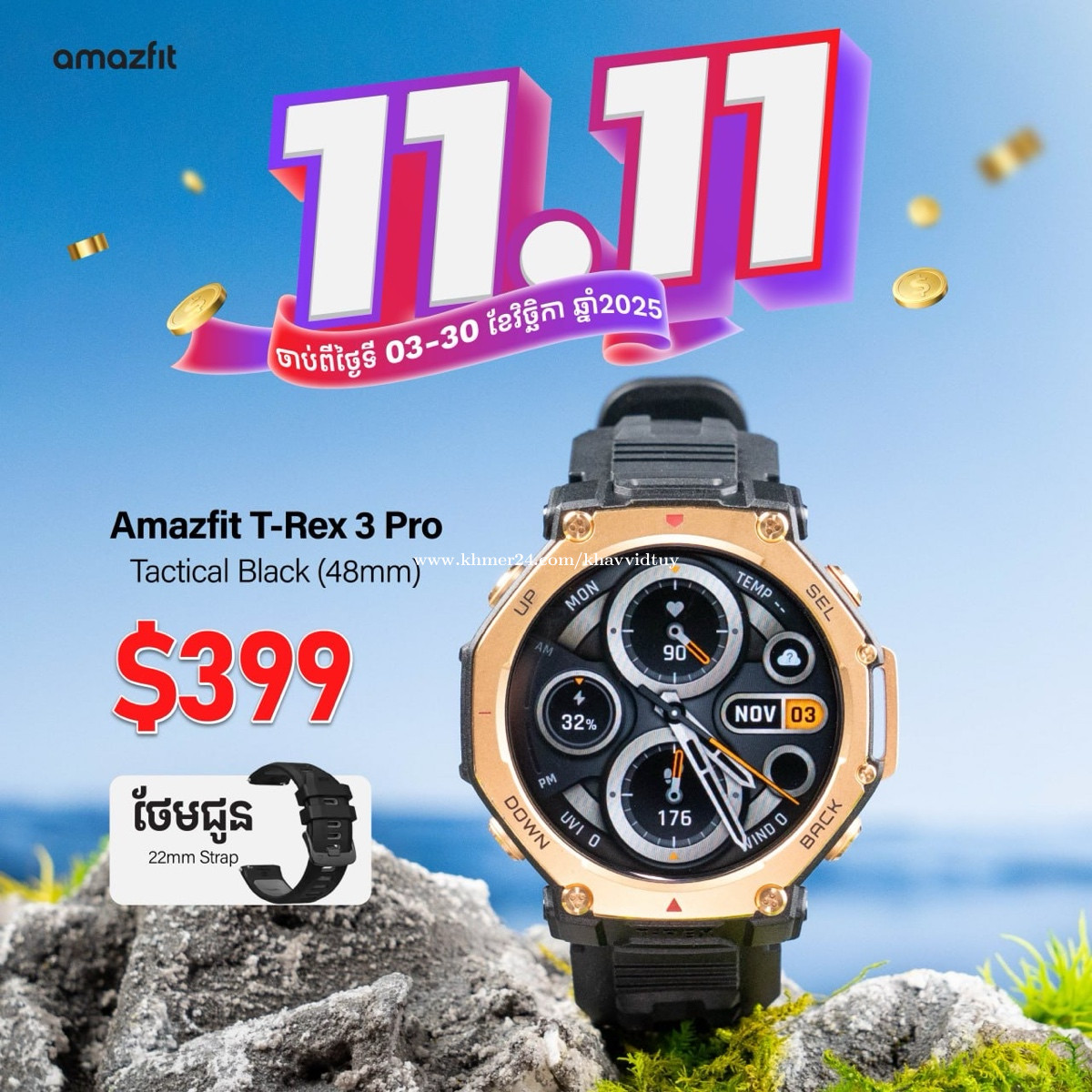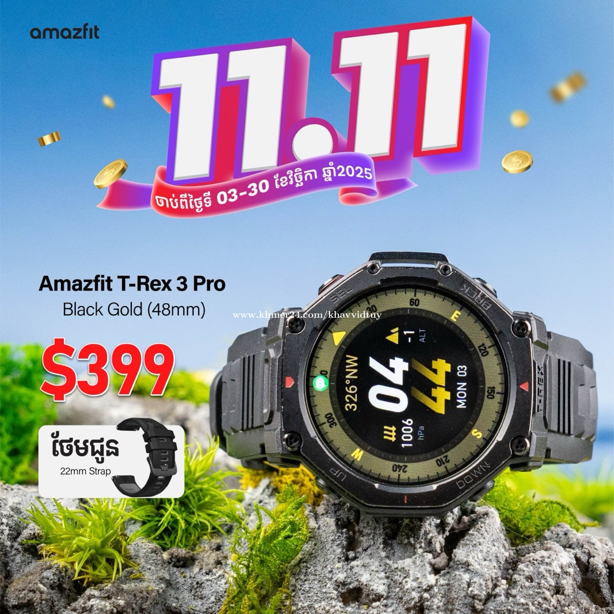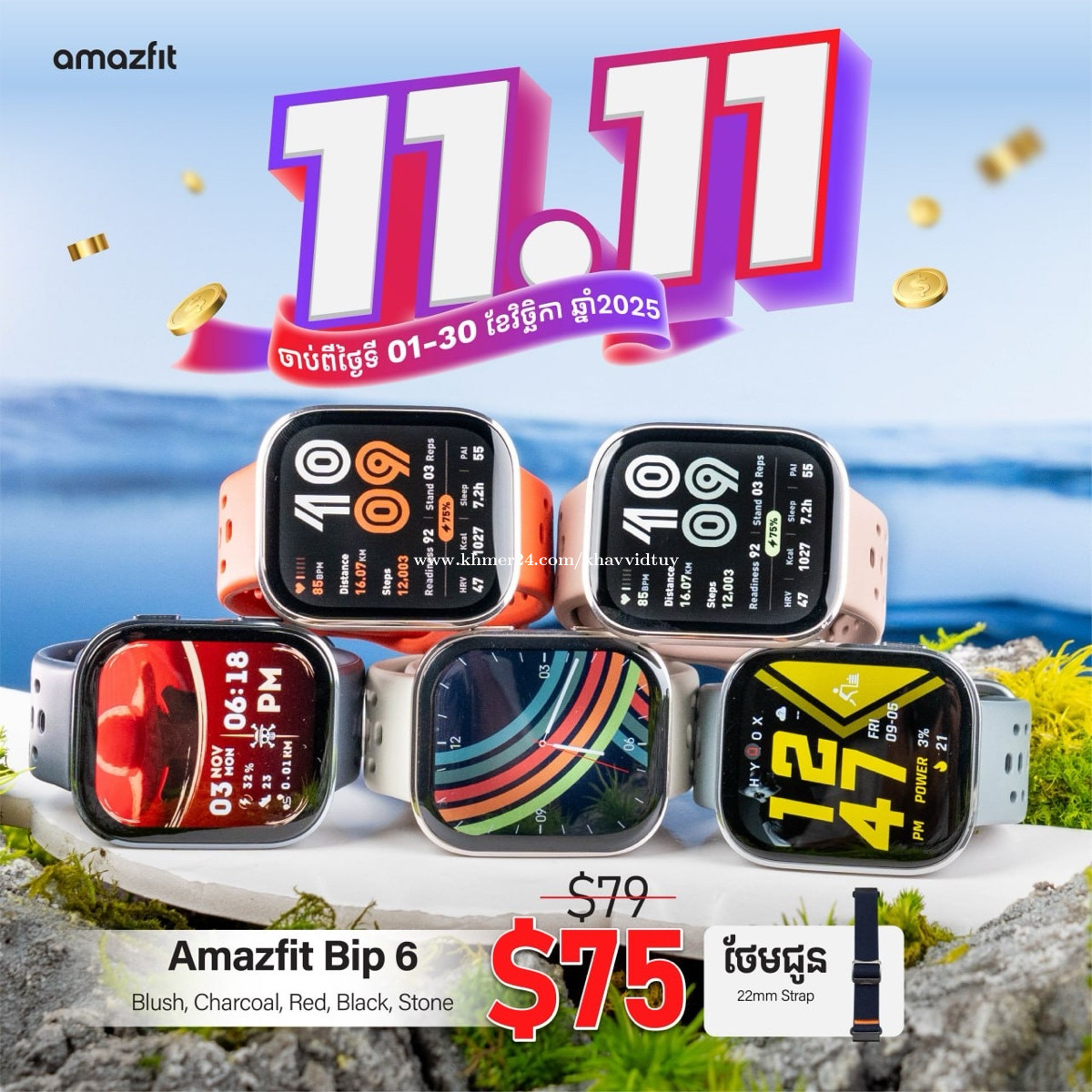 🎉 ថ្ងៃល្អខែល្អ 11.11 Big Promotion ប្រចាំឆ្នាំ ចំណេញរហូតដល់ 50$ និងថែមកាដូរជាច្រើនភ្លាមៗ 😍🎉 ចាប់ពីថ្ងៃទី 01 រហូតដល់ថ្ងៃទី 30 ខែវិច្ឆិកា 2025 តែប៉ុណ្ណោះ! សម្រាប់ព័ត៌មានបន្ថែម 0976743xxxClick To Call #TechZone #BigSalePromotion #Amazfit #SmartWatch #Promotion #11promotio #Noise #kospet