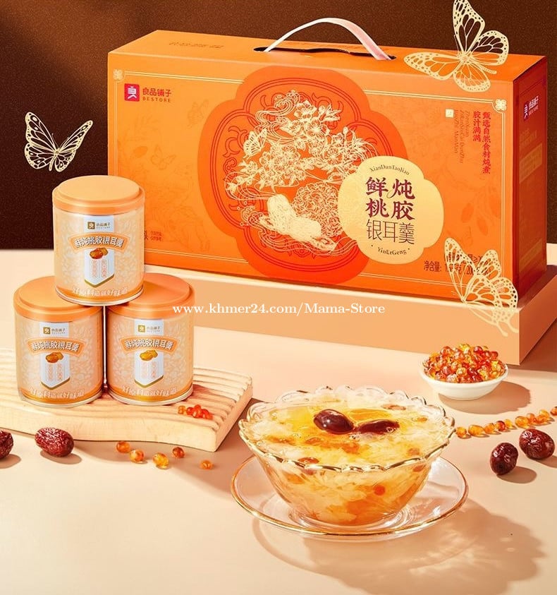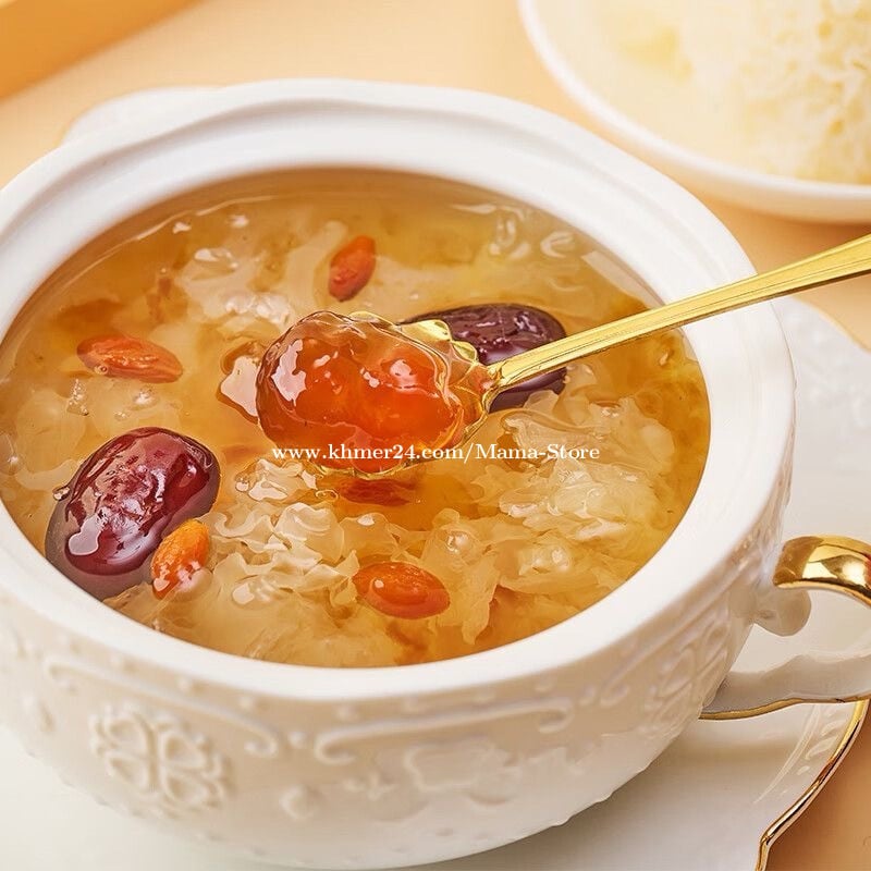 #បង្អែមព្រិលត្រចៀកកាំ (Snow Fungus Dessert) ដែលផ្សំពី Snow fungus, Goji berry, Red jujube និង Peach gum មានអត្ថប្រយោជន៍ច្រើនសម្រាប់សុខភាព និងសម្រស់ ដូចខាងក្រោម៖ 🌼 1. Snow Fungus (ត្រចៀកកាំព្រិល) • ជួយបន្ថែមសំណើមស្បែក ធ្វើឲ្យស្បែកទន់រលោង • សម្បូរទៅដោយ Collagen ធម្មជាតិ ជួយបន្ថយភាពជ្រីវជ្រួញ • ល្អសម្រាប់សួត និងប្រព័ន្ធដង្ហើម • ជួយបំបាត់ការរលាក និងជំរុញភាពស៊ាំ 🍒 2. Goji Berry (គោជីបឺរី) • ជួយថែរក្សាសុខភាពភ្នែក • បង្កើនភាពស៊ាំនៃរាងកាយ • សម្បូរទៅដោយ Antioxidant ជួយប្រឆាំងភាពចាស់ • ជួយថែរក្សាស្បែកឲ្យភ្លឺថ្លា 🍎 3. Red Jujube (ពុទ្រាក្រហម) • ជួយបំប៉នឈាម និងបង្កើនថាមពល • ជួយឲ្យគេងល្អ និងបន្ថយស្ត្រេស • ល្អសម្រាប់ប្រព័ន្ធរំលាយអាហារ • ជួយថែរក្សាបេះដូង 🍑 4. Peach Gum (ជ័រផ្លែប៉េះ) • សម្បូរទៅដោយ Collagen ធម្មជាតិ • ជួយឲ្យស្បែកមានភាពតឹង និងភ្លឺរលោង • បំបាត់ភាពស្ងួតស្បែក • ជួយបន្ថយភាពចាស់ និងជ្រីវជ្រួញ ✅ អត្ថប្រយោជន៍រួម • ថែរក្សាស្បែកឲ្យស្អាតពីខាងក្នុង • បង្កើនភាពស៊ាំ និងសុខភាពទូទៅ • ជួយបន្ថយភាពចាស់ និងអស់កម្លាំង • ជួយឲ្យរាងកាយមានសំណើម និងស្រស់ថ្លា ១ ប្រអប់ មាន 8 កំប៉ុង តម្លៃ 11$ ❤️ #healthylifestyle #snowfungus #បង្អែមព្រិលត្រចៀកកាំ #BirdnestCollagen #birdnestdrink
