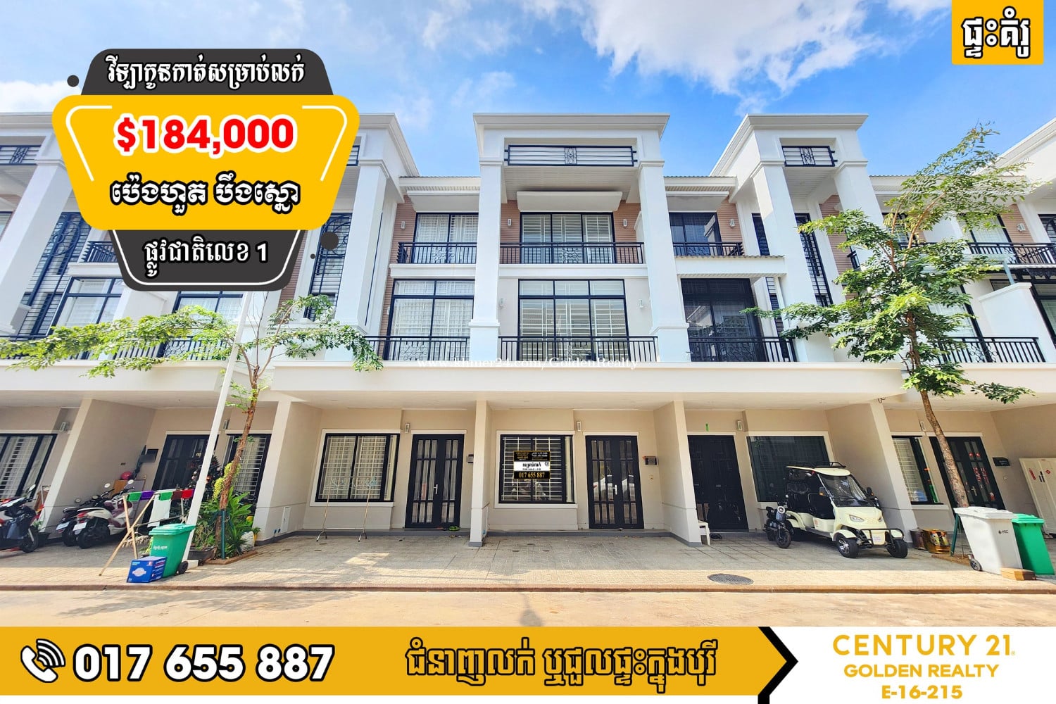 #វីឡាកូនកាត់ LA សម្រាប់លក់ ក្នុងបុរីប៉េង ហួតបឹងស្នោរផ្លូវជាតិលេខ 1 * តម្លៃលក់ $184,000 ចរចាបាន * ផ្ទេរកម្មសិទ្ធប្លង់រឹងជូន * ទំហំដី/Land size: 5m x 20m * ទំហំផ្ទះ/ House size: 5mx 12m * បន្ទុប់គេង/ Bedroom: 4 * បន្ទប់ទឹក/ Bathroom: 5 * មានចំណូលពីរការជួលស្រាប់ * ទិសបែរខាងជើង North 📞សម្រាប់ព័ត៌មានលម្អិតសូមទំនាក់ទំនងមកកាន់ Telegram នឹង លេខទូរស័ព្ទ ខាងក្រោម Tel: 017655xxxClick To Call / 099655xxxClick To Call / 023655xxxClick To Call 🔍Telegram t.me/c21goldenrealtyhotline