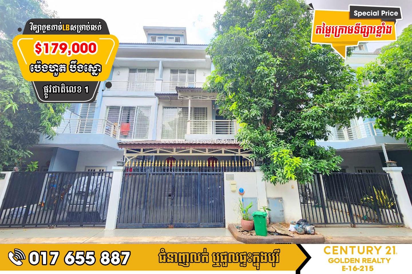 #វីឡាកូនកាត់ LB សម្រាប់លក់ក្នុងបុរីប៉េង ហួតបឹងស្នោរផ្លូវជាតិលេខ 1 * តម្លៃល្អខ្លាំងនៅក្នុងគម្រោង តំបន់ នឹង ក្រោមទីផ្សារខ្លាំង * តម្លៃលក់ $179,000 (ចរចាបាន) * ផ្ទេរឈ្មោះប្លង់រឹងជូន * ទំហំដី 5m x 19m * ទំហំផ្ទះ 5m x 12m * បន្ទប់គេង 4 | បន្ទប់ទឹក 5 * មានផ្តល់ជូនសម្ភារះមួយចំនួនទៀត ☎សំរាប់ពត៍មានលម្អិតសូមទំនាក់ទំនងមកទូរស័ព្ទលេខៈ Tel: 017655xxxClick To Call / 099655xxxClick To Call / 0236558xxxClick To Call 📩Telegram t.me/c21goldenrealtyhotline