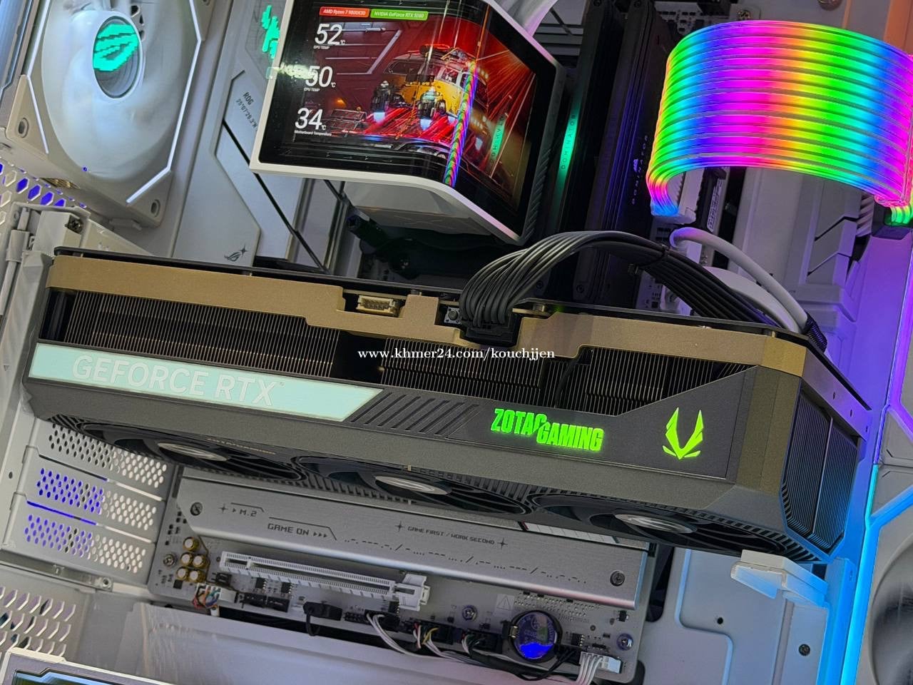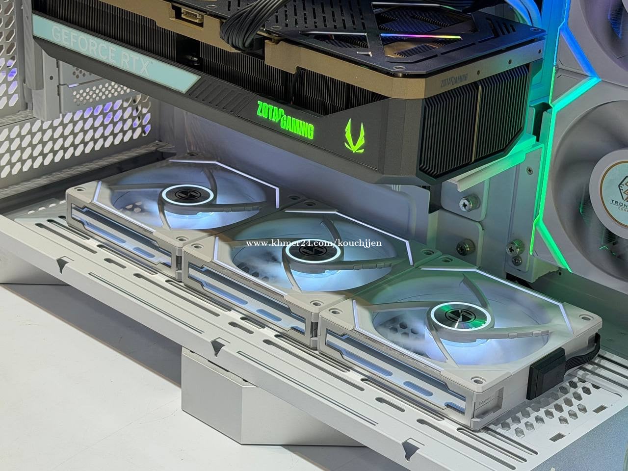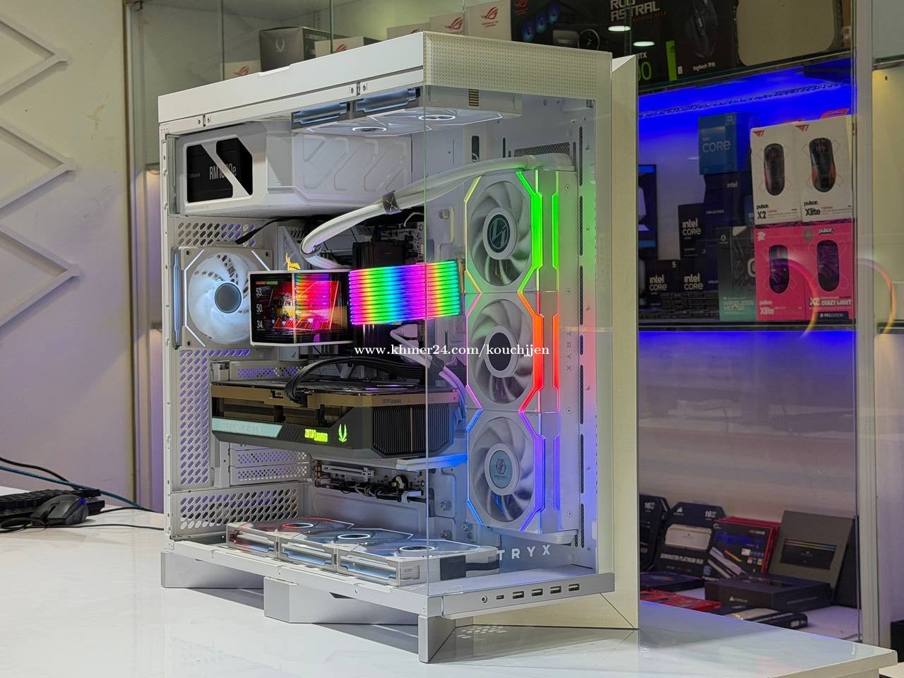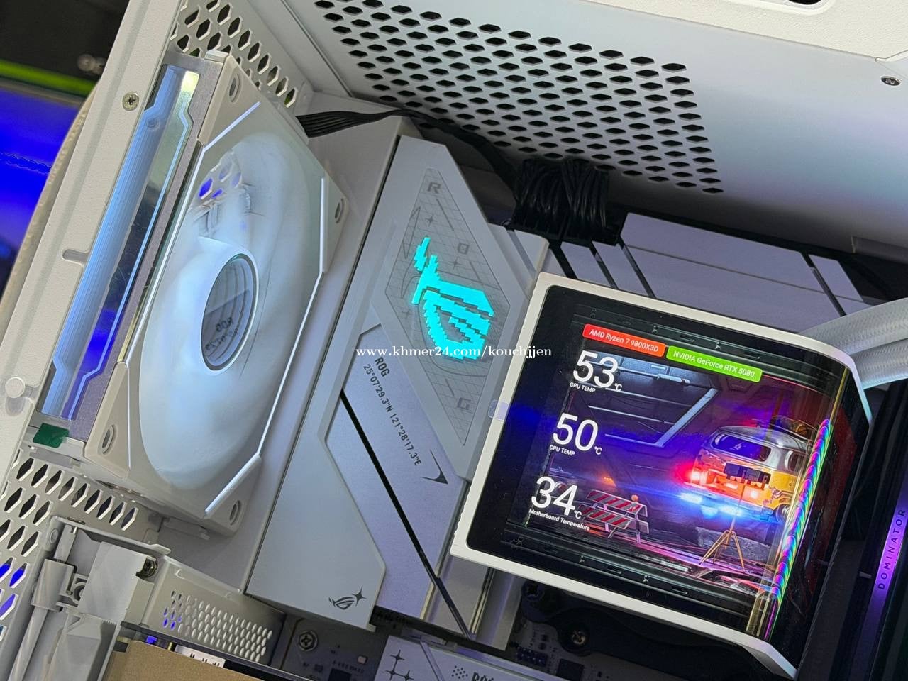 #Pcbuildមួយទឹកនៅស្អាត 99% Cpu : AMD Ryzen 7 9800X3D Ram : Corsair Dominator Platinum 24GBX2 48GB 7200Mhz M.2: crucial P3 1TB M.2: PNY CS2140 2TB + HDD 2TB VGA: Zotac RTX 5080 MB: Rog Strix B850 A Power : Corsair RM1000e 1000w Cooling : TYRX Panorama LCD 360mm Case : TYRX LUCA L70 Fan : LianLi LCD 3 unit / LianLi Normal 6 unit