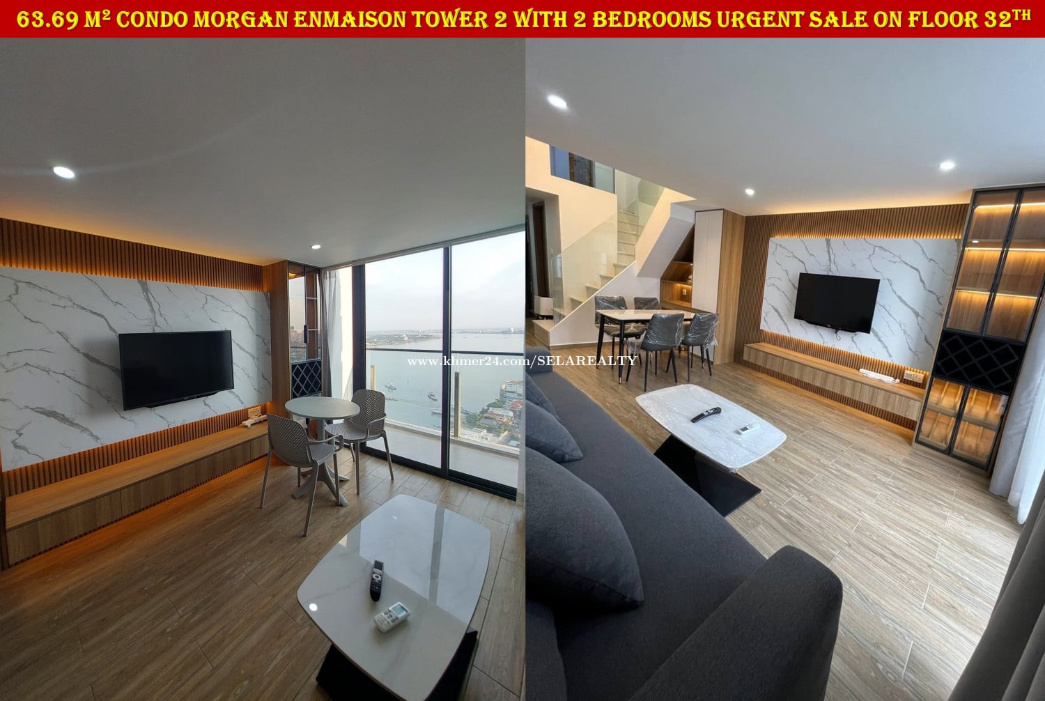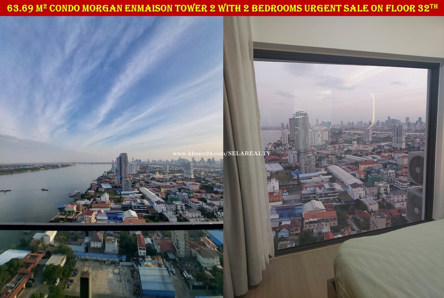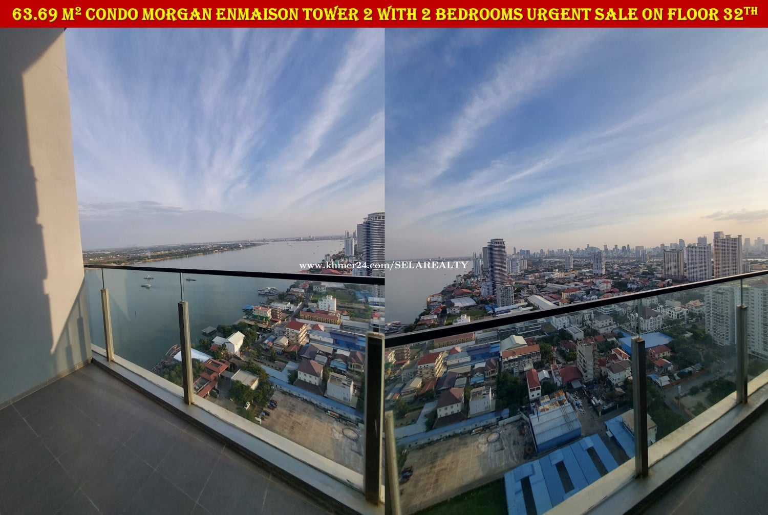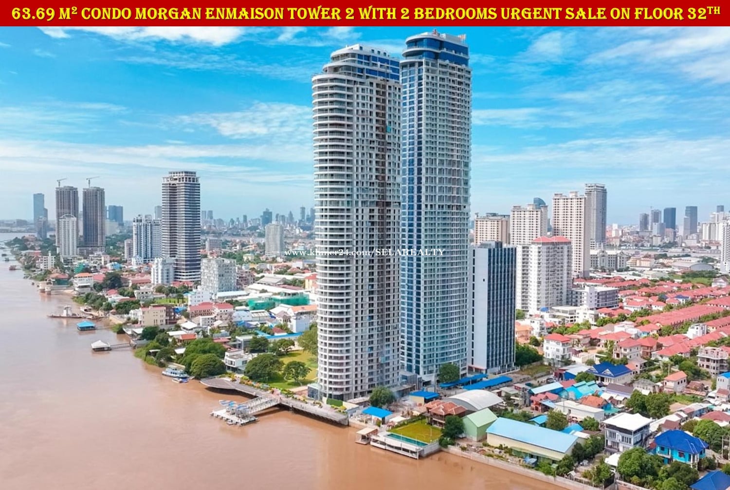 #SC037 ๐ 2 Floor Condo Morgan Enmaison Tower 2 with 2 Bedrooms Urgent Sale On High Floor - Floor: 32th - Viewing: City & River - Net Area: 63.69 sqm - Bedroom: 2 - Bathroom: 2 - Balcony: 1 - Living area, Kitchen, Dinning areaโ - Very New Fully Furnished ... - Lots of Parking, Gym, Swim, Garden, Restaurant, Office ... - Map: https://maps.app.goo.gl/yDmxGF2wnHnuuDq1A - Sale Price: 95,000$ - Transfer Title: Freehold | Strata Title | Condo Hard Title - Location: Chroy Chong Va, Phnom Penh ๐ Contact Exclusive Realtor: 069239xxxClick To Call | 095799xxxClick To Call | 0713023xxxClick To Call ๐ Telegram Group: https://t.me/+LxD_l_Ua3IA5NTI9 ๐ Follow Our Social Media: https://linko.page/sz66qj64k6gv #SELAREALTY #BPR_Team #Land #House #Villa #Condo #Consultant #SALE #BUY #RENT #LEASE #PhnomPenh #Cambodia